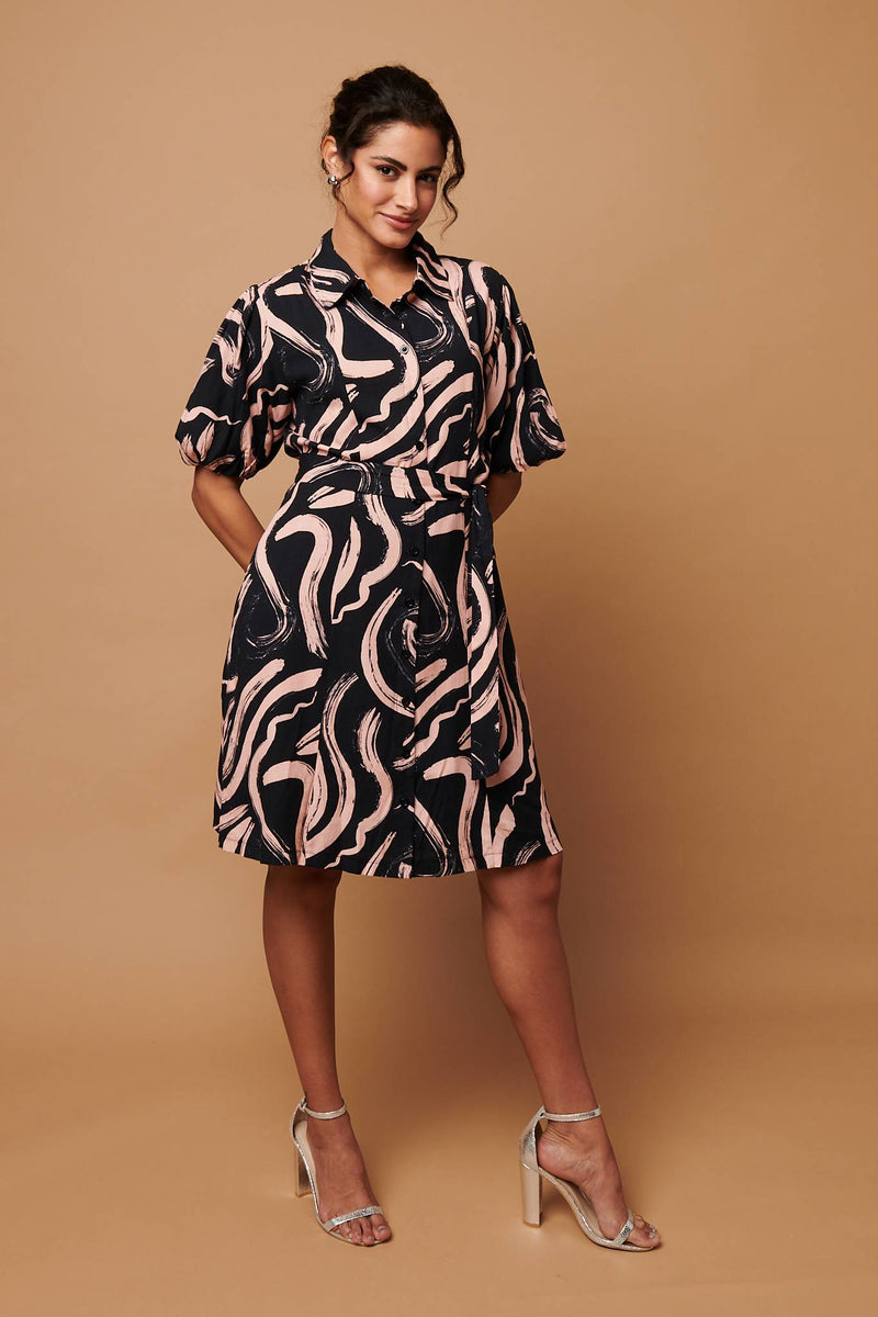 Whether you're dressed for work or a formal occasion, this shirt dress is a must-have. It has 1/2 puff sleeves and a flattering tie waist for a tummy-slimming look. It also features a collar, buttons, and a short hem. Style this shirt dress with brogues for work, or heels for a more formal event.