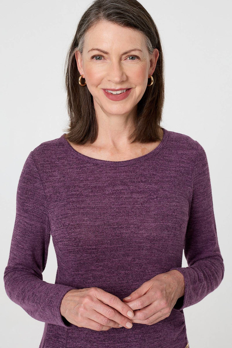 For comfort and style, you can't beat a shift dress. This one has cosy long sleeves, a short length hem and a round neck. It's decorated with a ruched side panel and button details, and even has hidden pockets too.