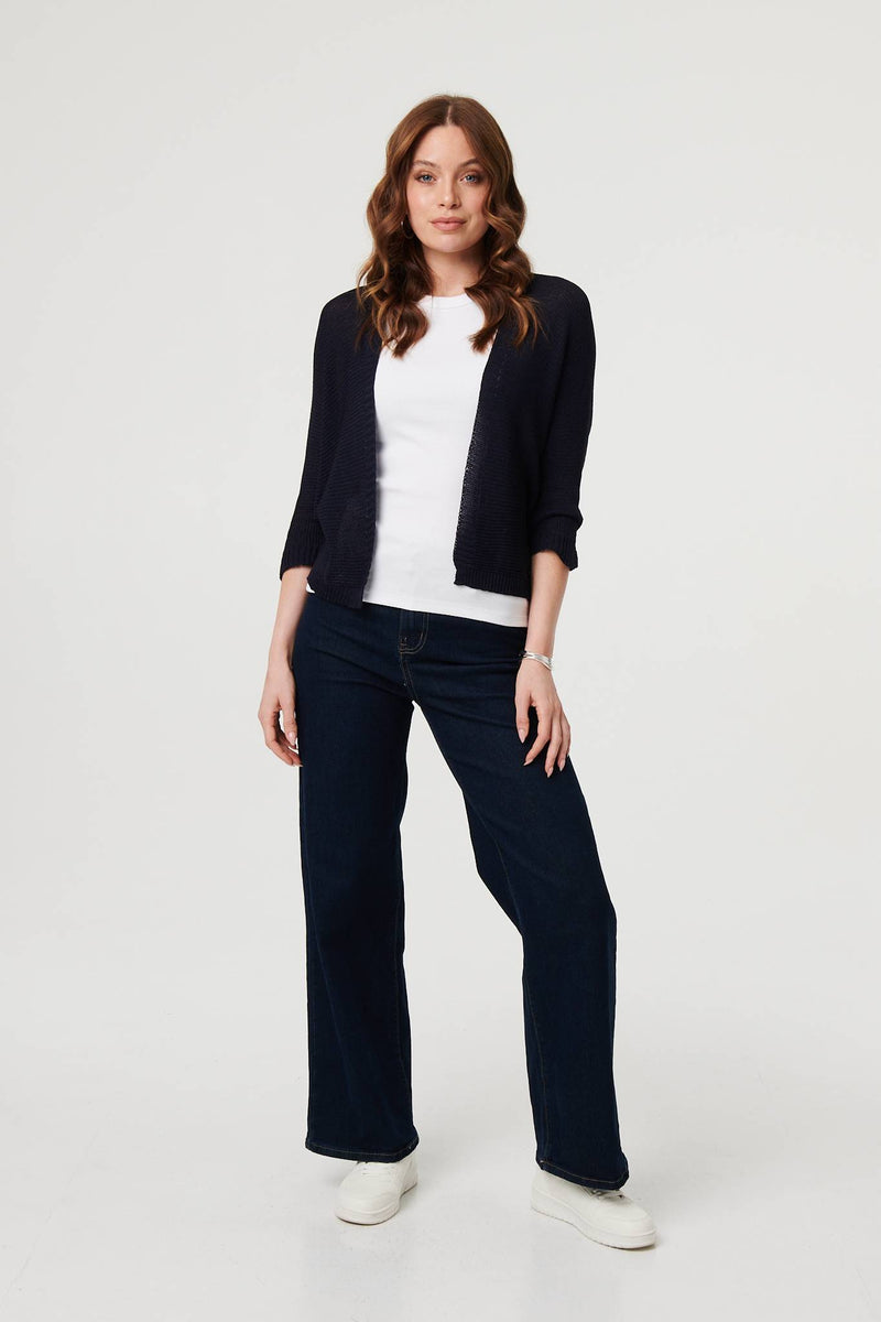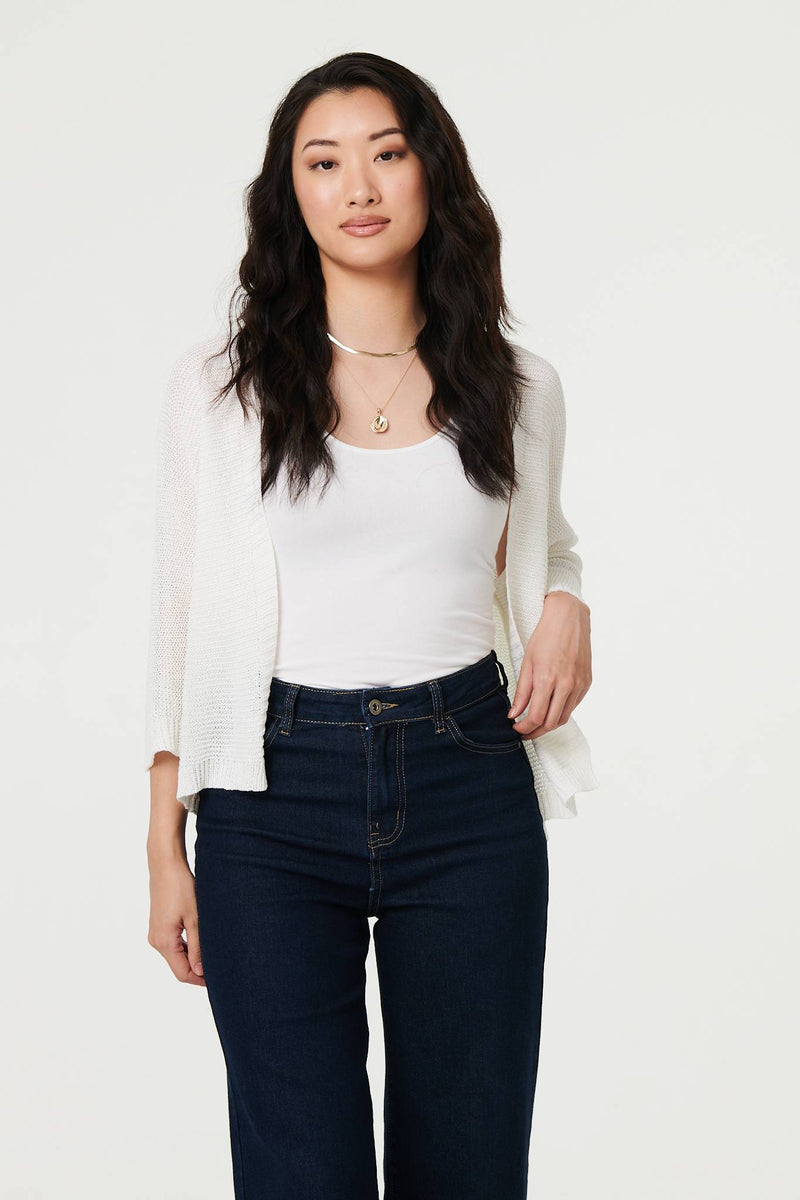 Throw on an extra layer with this stylish cardigan. It's made from a mesh knit material, with 3/4 sleeves and a slightly cropped fit. Thanks to the open front shape, this cardigan will drape beautifully over any casual or smart outfit.
