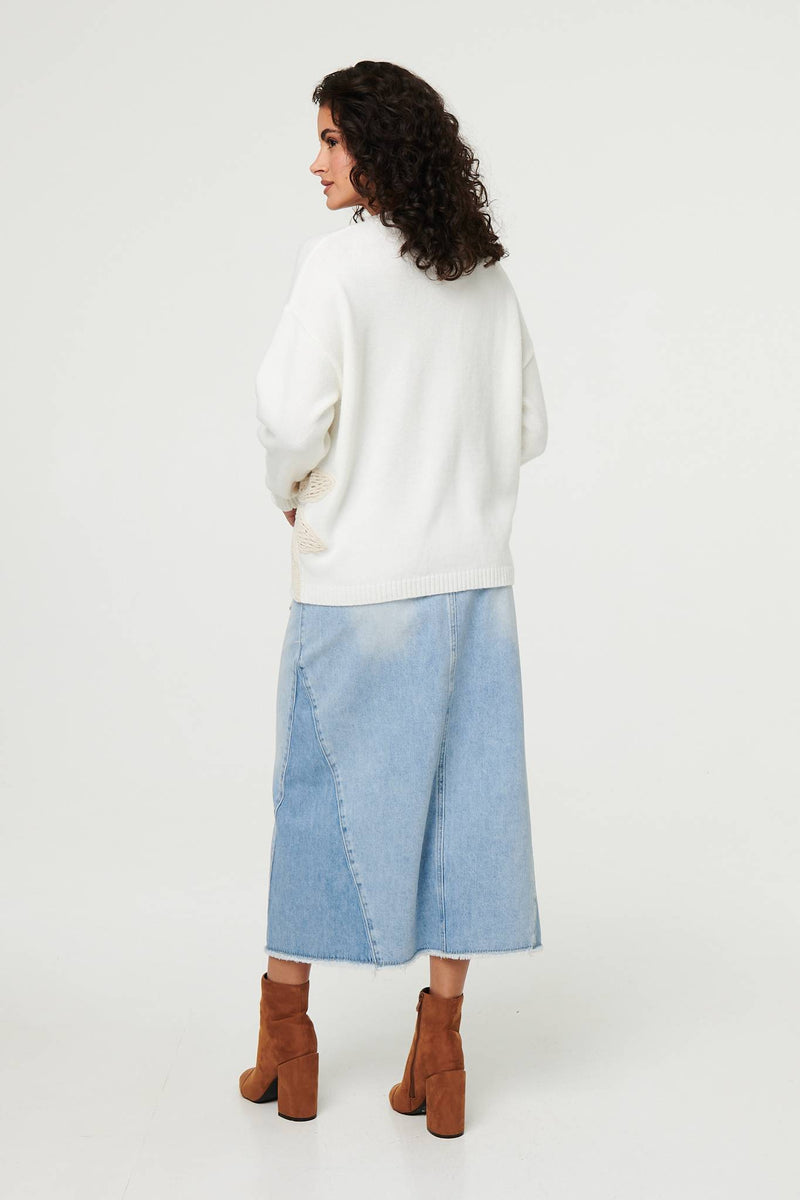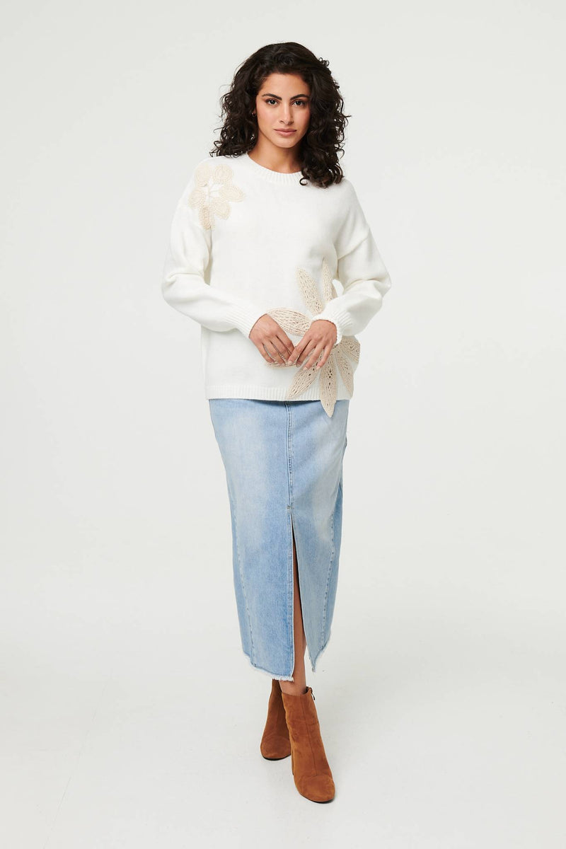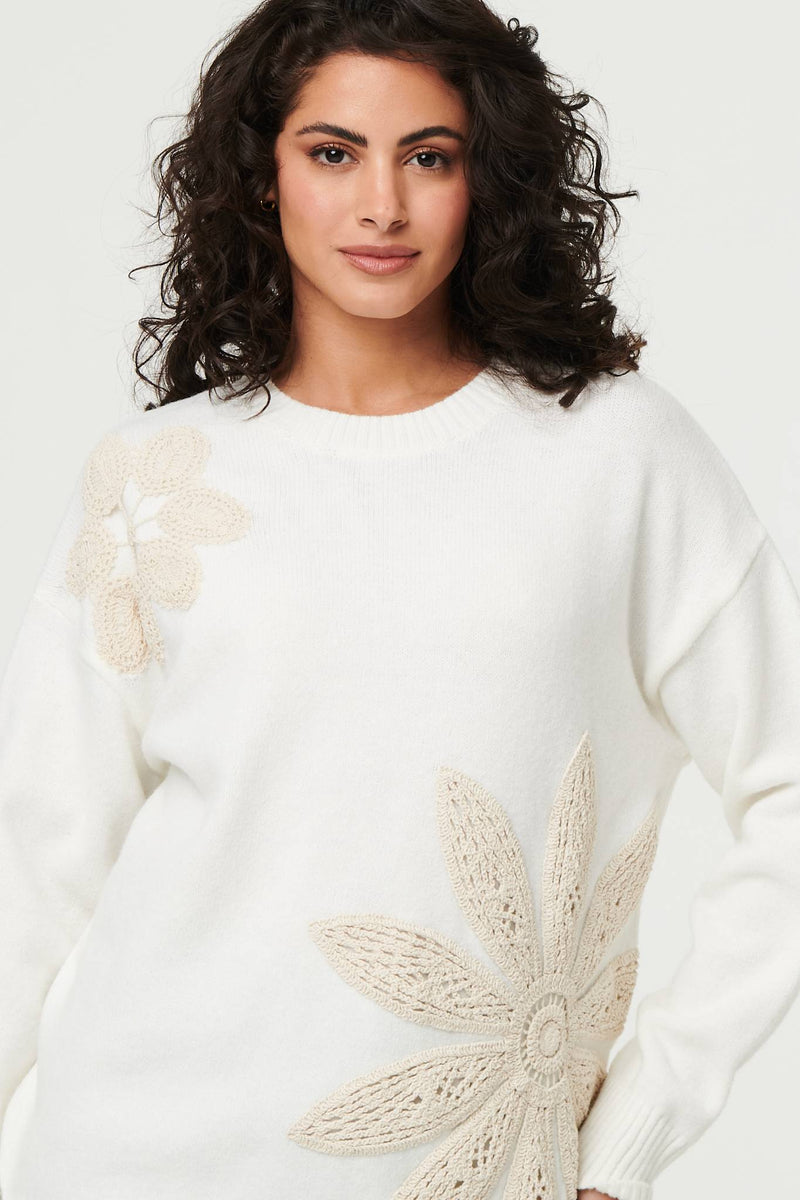 This relaxed jumper is perfect for casual and smart dress codes. It has beautiful embroidered details; as well as a round neck, long sleeves and a thigh length hem.