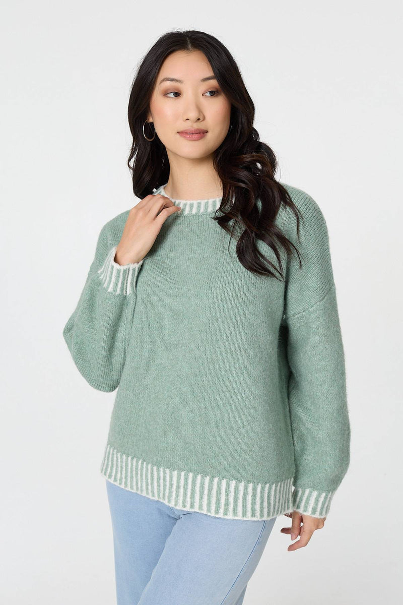Contrast Trim Balloon Sleeve Jumper in Grey