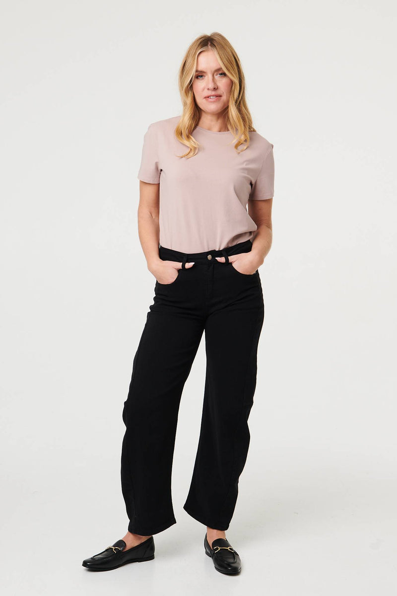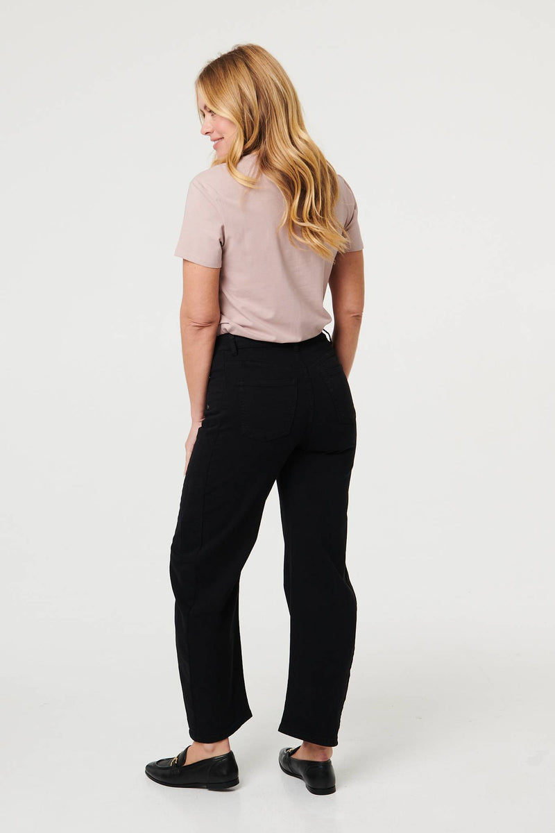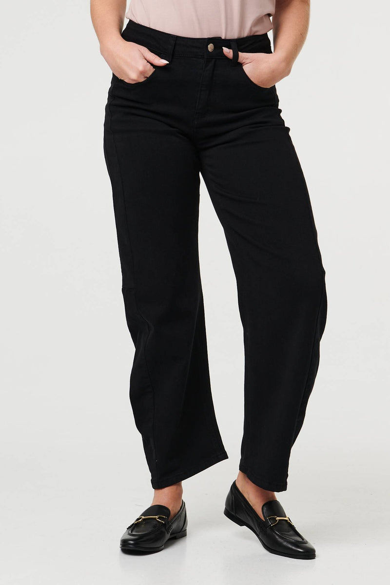 You can't go wrong with the perfect pair of jeans. These have a high waist fit, with a barrel leg shape that is flattering on all figures. Tap into the wide leg jeans trends and style these with loafers and a plain t-shirt. They also feature belt loops and a button fastener.