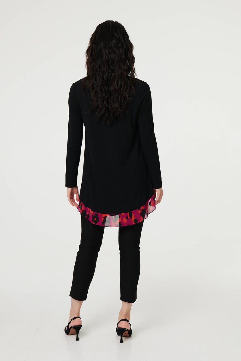 This smart blouse is made from a semi sheer material and has a relaxed, drapey shape. It also has long sleeves, a v-neck and a thigh length hem. Wear it over slim trousers or leggings for a smart look, or layer over blue jeans for a relaxed outfit.