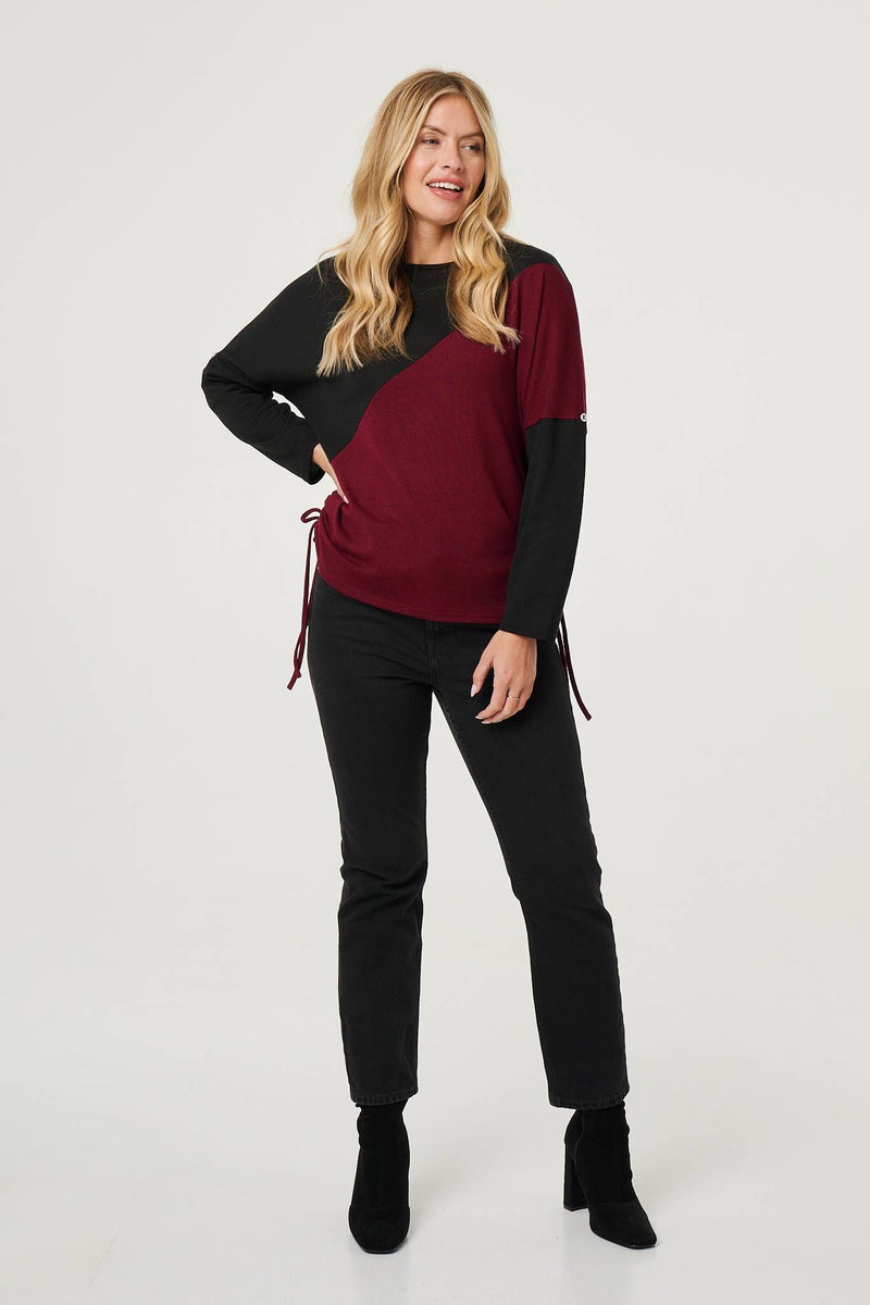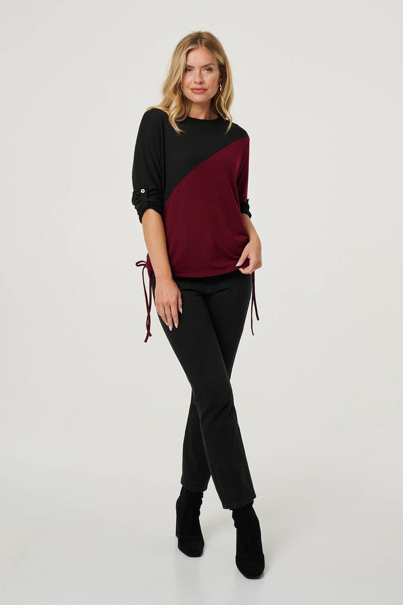 Stay cosy on a chilly autumnal day in this simple top. It has long batwing sleeves, with handy buttons so you can turn them up for a more relaxed finish. It also has ruched side details, complete with drawstring adjusters. Wear this top with simple trousers or denim for a smart casual outfit.