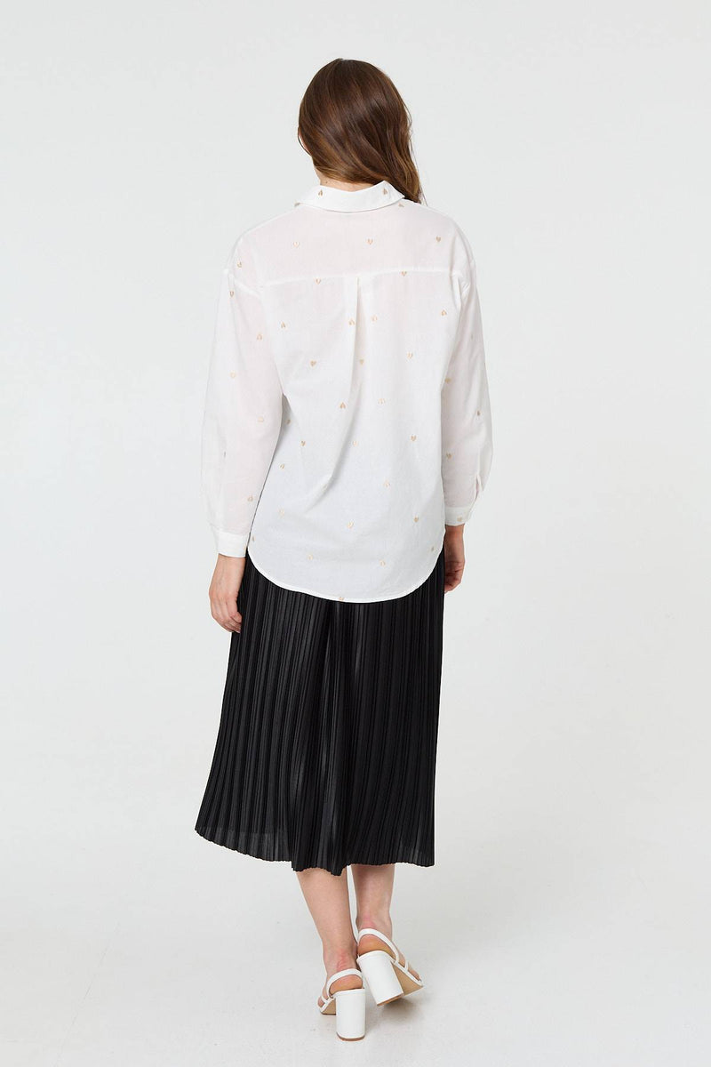 Add this simple shirt to your workwear wardrobe for instant, effortless style. It has long cuffed sleeves, a classic collared v-neck and delicate embroidered details. Tuck the curve hem into smart trousers, or leave it loose over a midi skirt for an evening out.