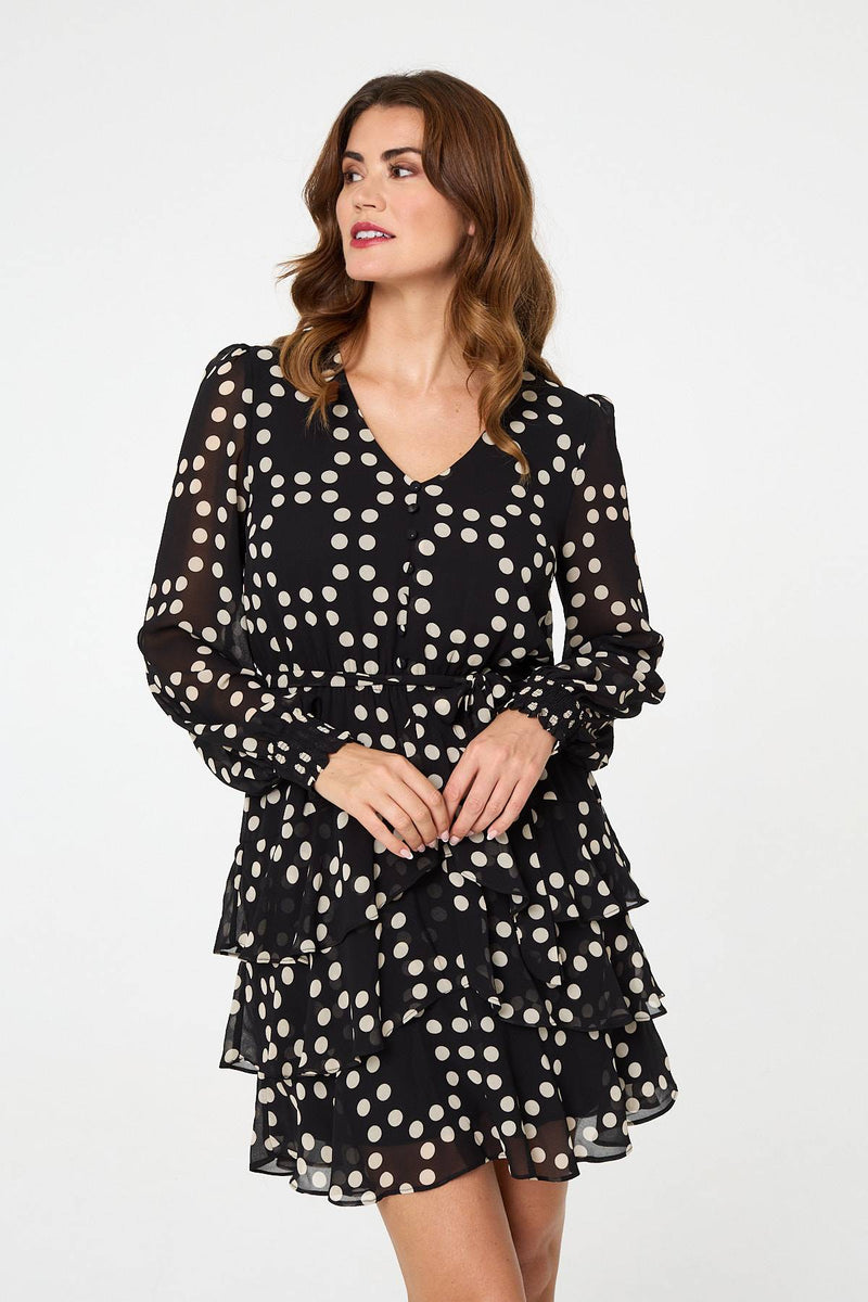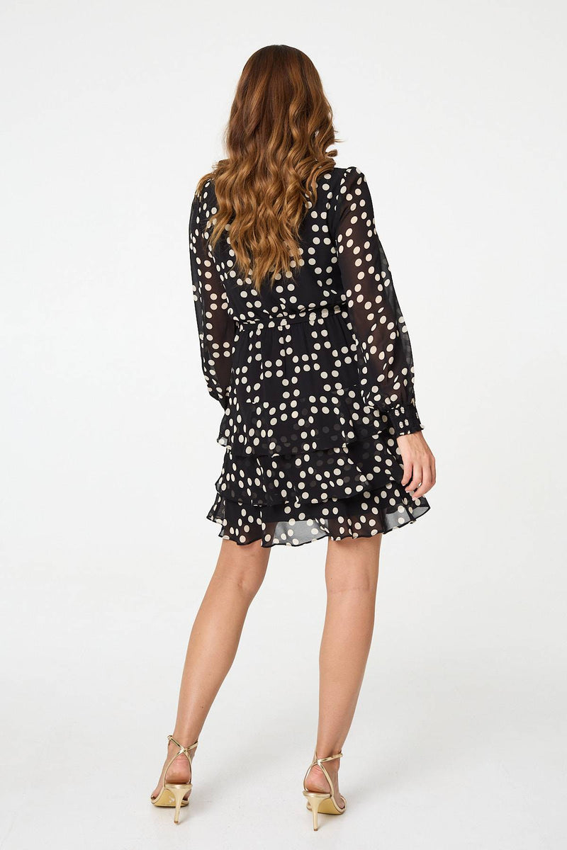 You can't beat an elegant short dress. This one features a semi sheer layer, long puff sleeves and a relaxed shape. Adjust the tie front for the perfect fit around your waist and style with your favourite heels for an evening out.