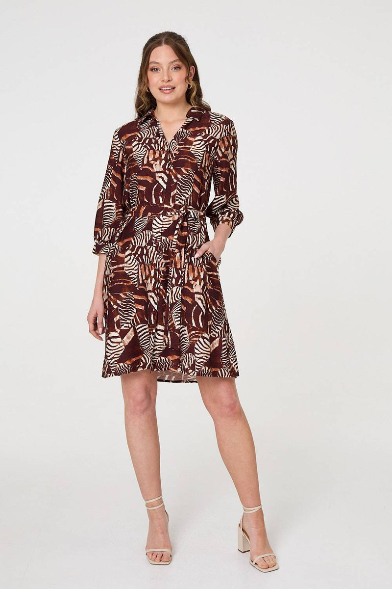 This flattering shirt dress is perfect for work and weekends. It has a tie waist and 3/4 sleeves, with a collared v-neck and buttons. Wear it with heels for a special occasion, or smart shoes for a day at the office.