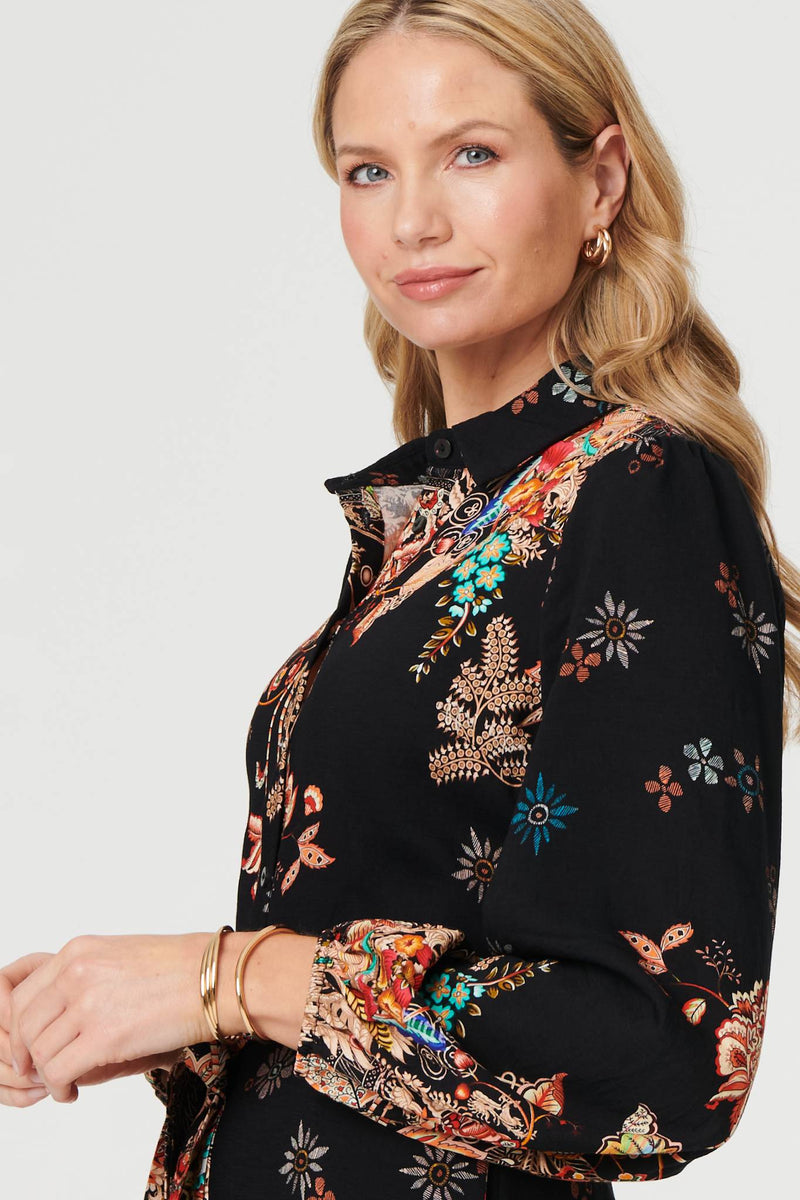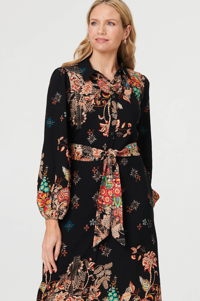 This elegant maxi dress has a flattering a-line shape with a tie waist. It features long balloon sleeves, a button front and a collar. Wear it with heels for an evening out, or your favourite boots for a smart autumnal finish.