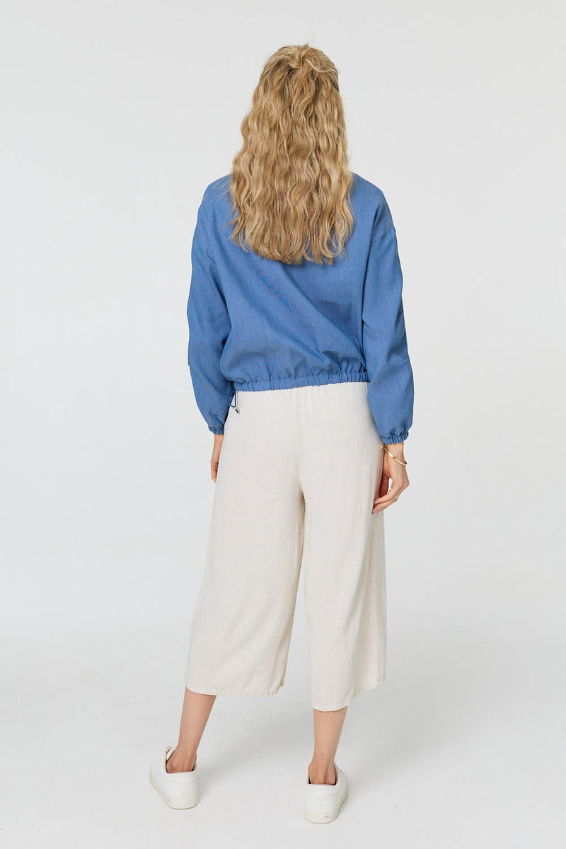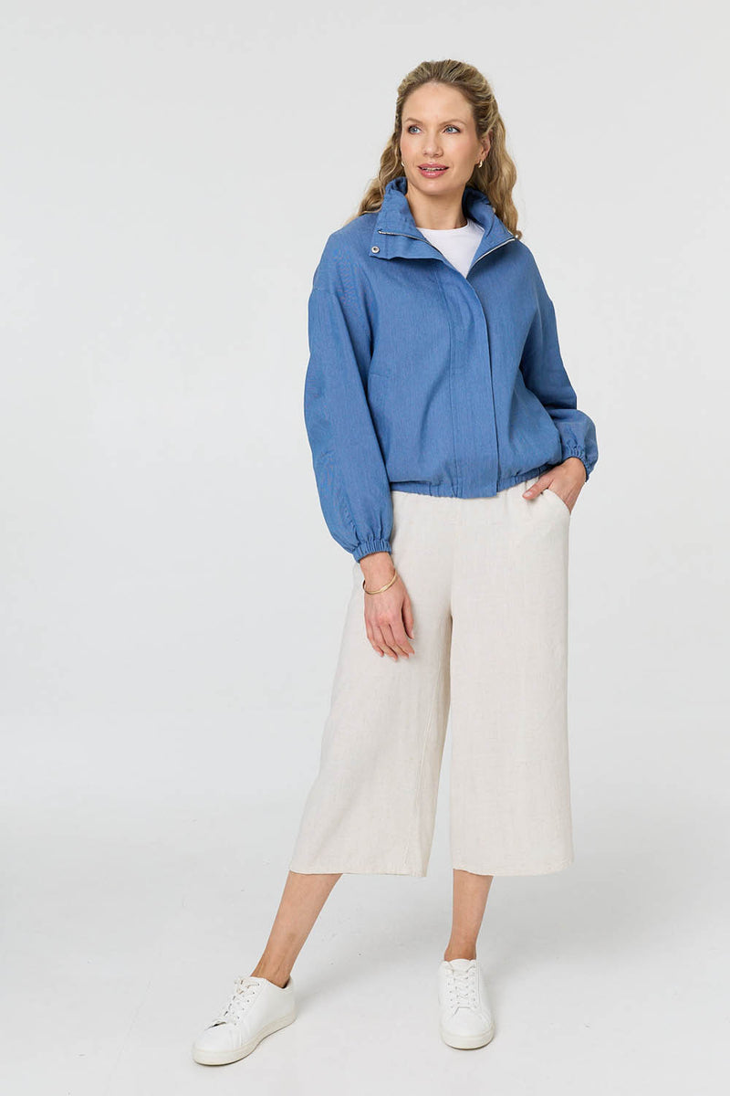 This relaxed jacket will make the perfect addition to your wardrobe. It has a casual fit with a drawstring hem for a slouchy, ruched look. It also has long sleeves with drop shoulders, and a high neck. Add this jacket over a casual outfit for a laid-back daytime look.