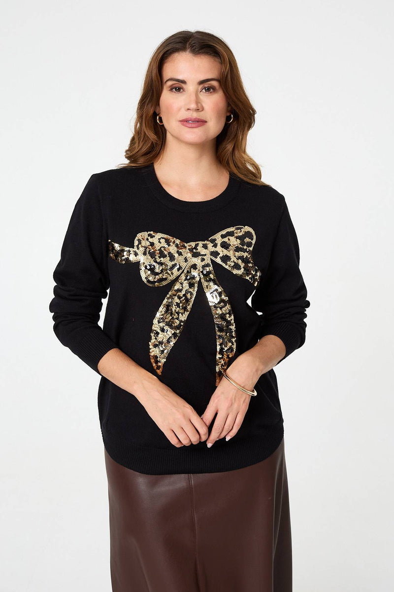This shimmery jumper is perfect for seasonal parties and other special occasions. It features a stunning sequin design on the front and has a relaxed, slouchy fit; with long sleeves and a hip length hem.