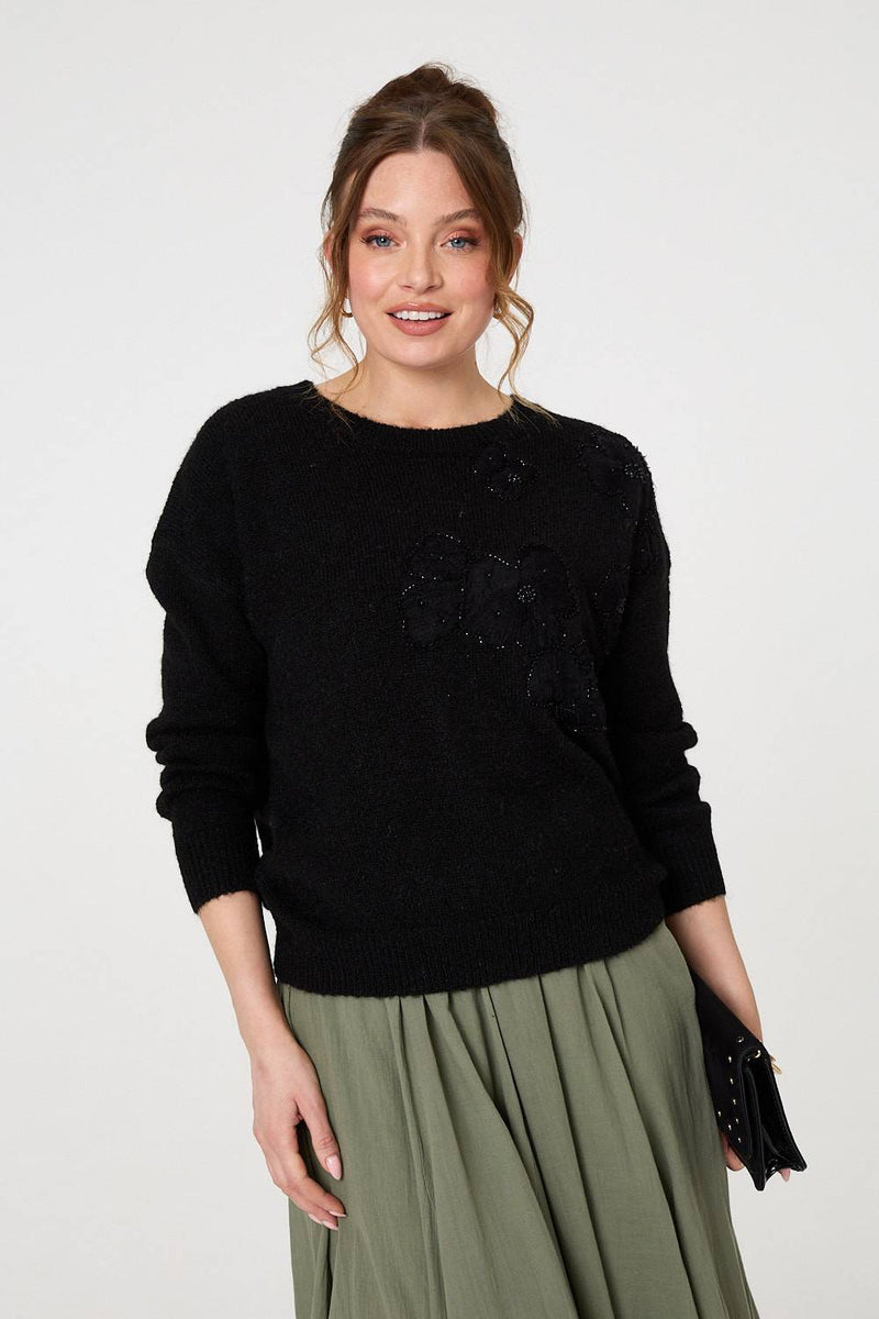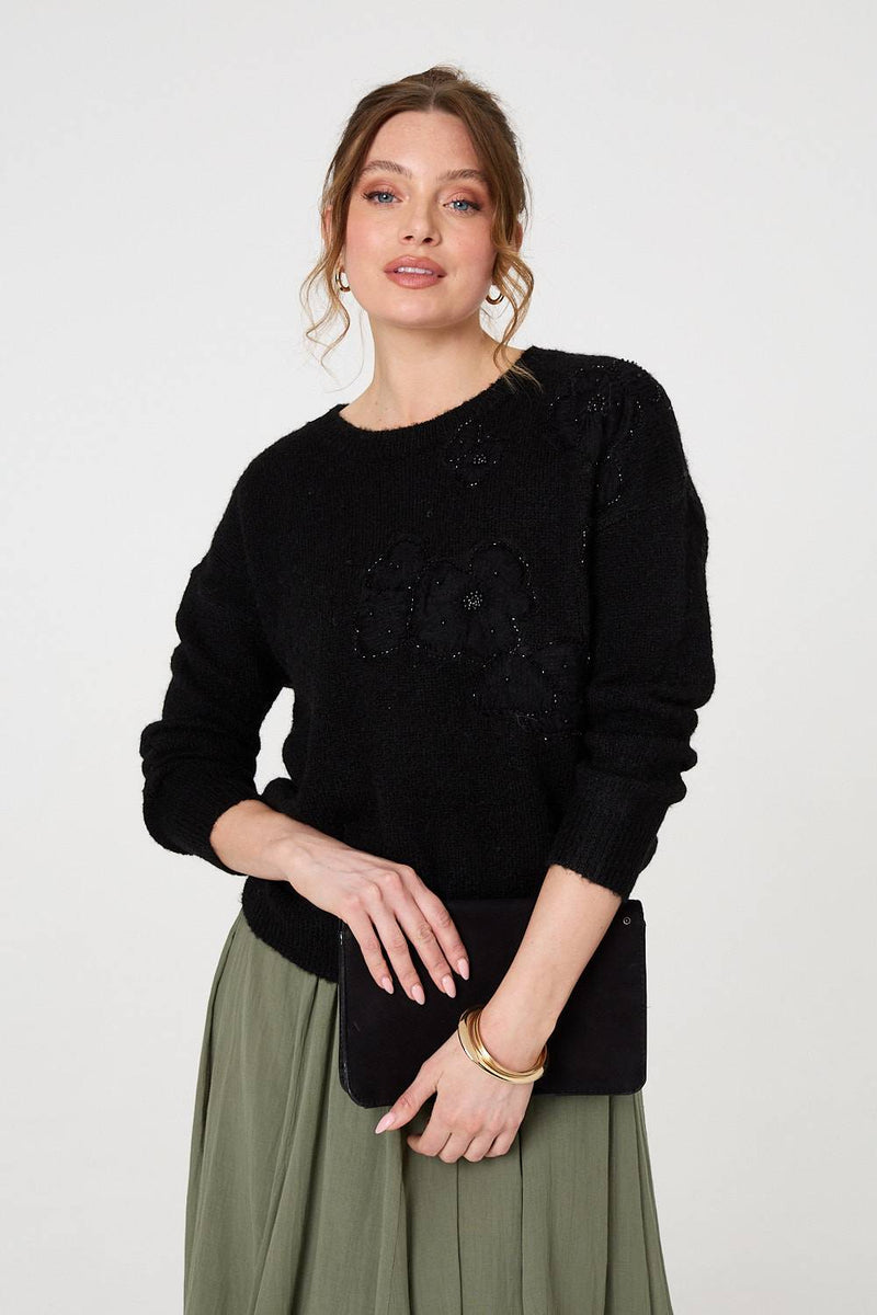 Add an extra stylish layer to your look with this embellished jumper. It has eye-catching sparkly details and a comfortable fit, so you can get the best of both worlds with comfort and elegance! It has long sleeves with drop shoulders, and a hip length hem. Wear over casual tops or smart blouses when you need some extra warmth.