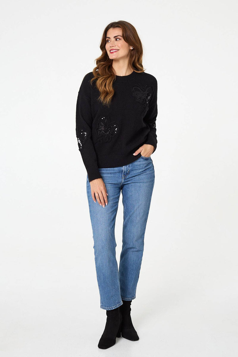 Bring some sparkle to your wardrobe with this relaxed jumper. It has long sleeves with drop shoulders, a round neck and a hip length hem. The sequin details make this jumper perfect for smart dress codes, such as work and professional events.
