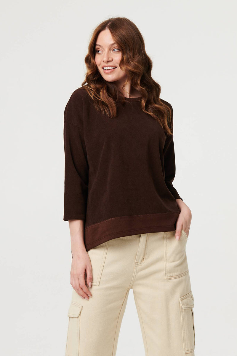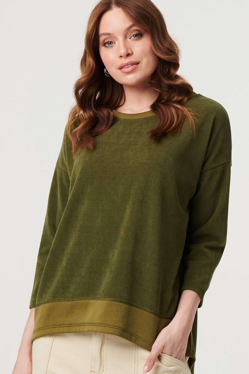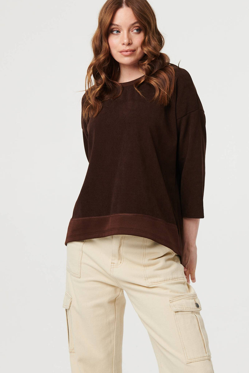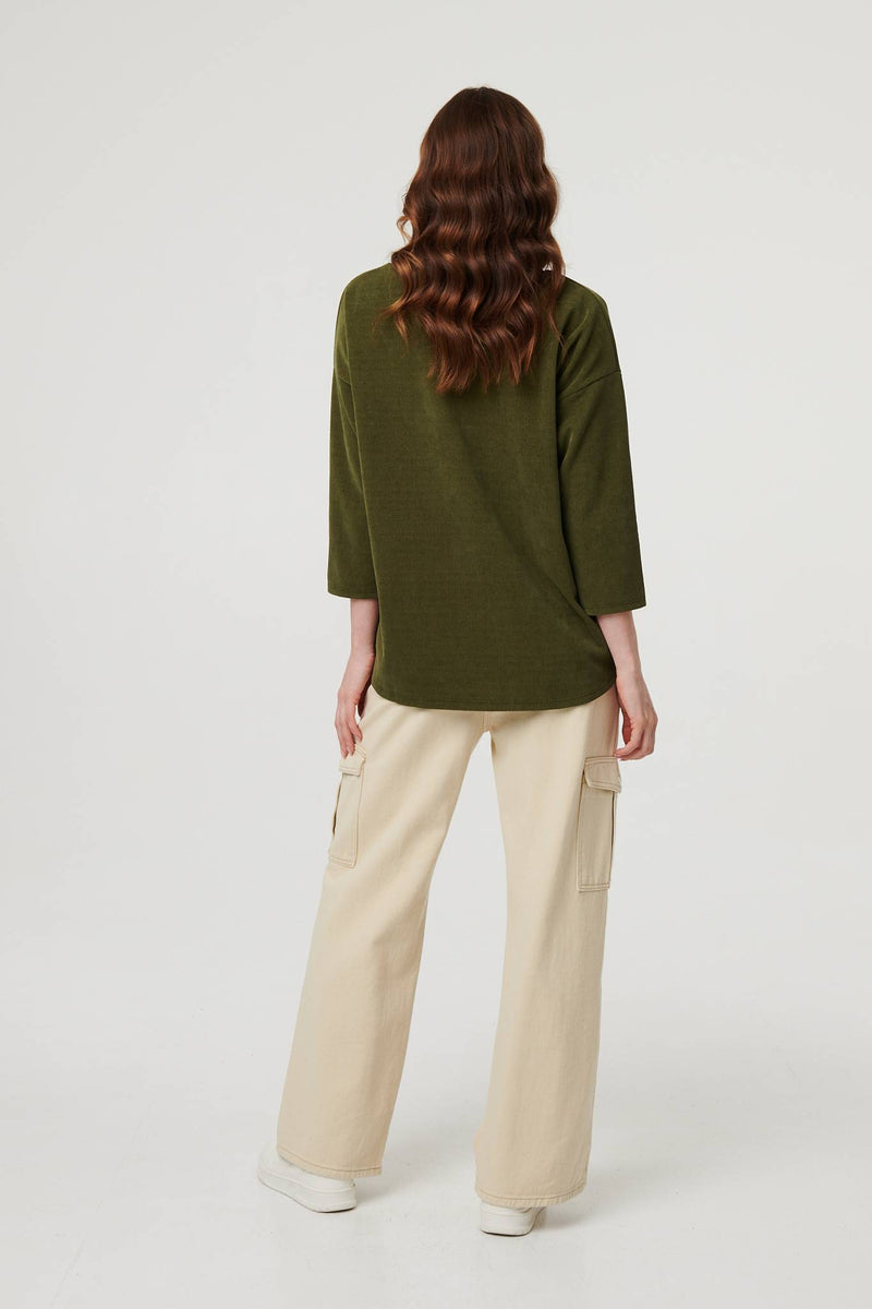 This elegant relaxed jumper is just what you need for autumn. It has 3/4 batwing sleeves, a boxy fit and a hip length hem. Wear it with smart trousers for extra warmth on a workday, or keep it casual with blue denim.