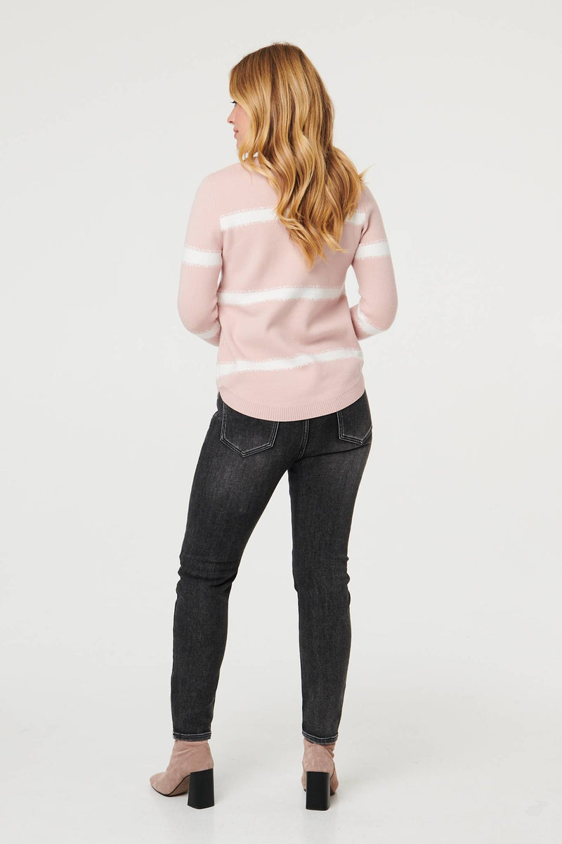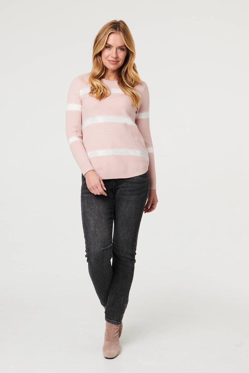 This elegant jumper has subtle sparkle details to add some feminine shimmer to your look. It has a slim fit, long sleeves and a round neck. The hip length hem is slightly curved for a flattering look on all figures.