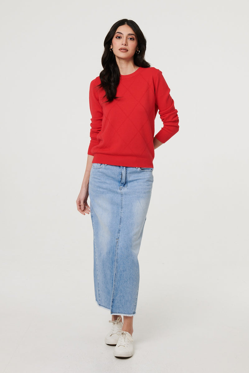 Feel elegant and feminine in this slim fit jumper. It has a textured knit design with a round neck, long sleeves and a hip length hem. Wear it with jeans for a casual look or elevate with a pencil skirt at your next day out.