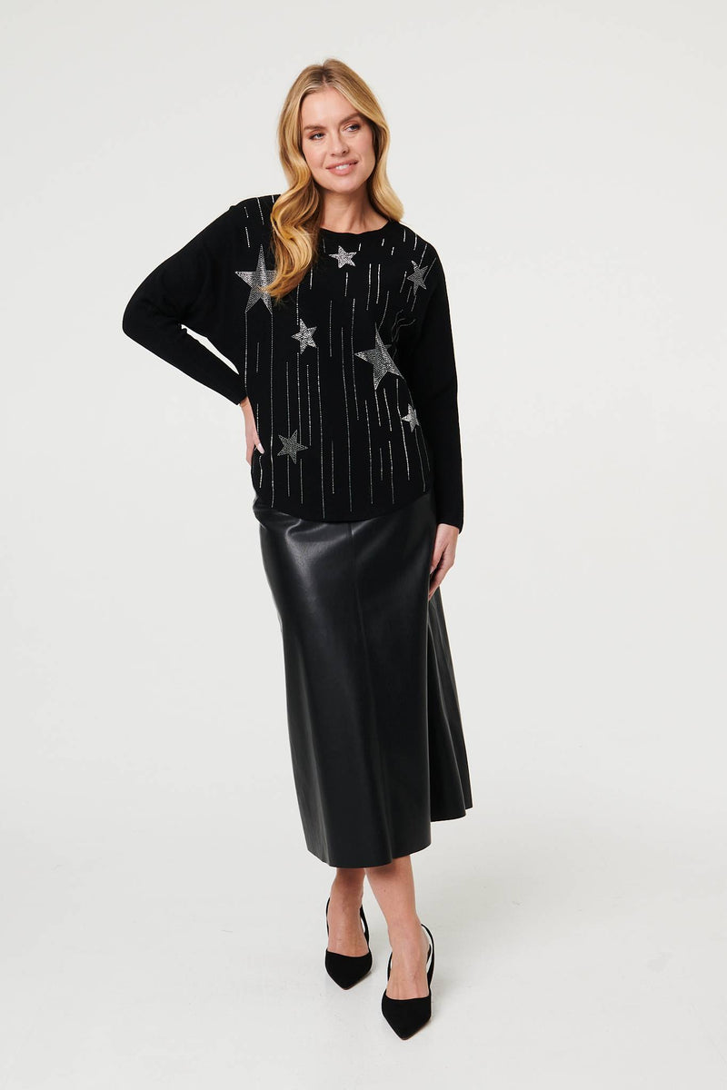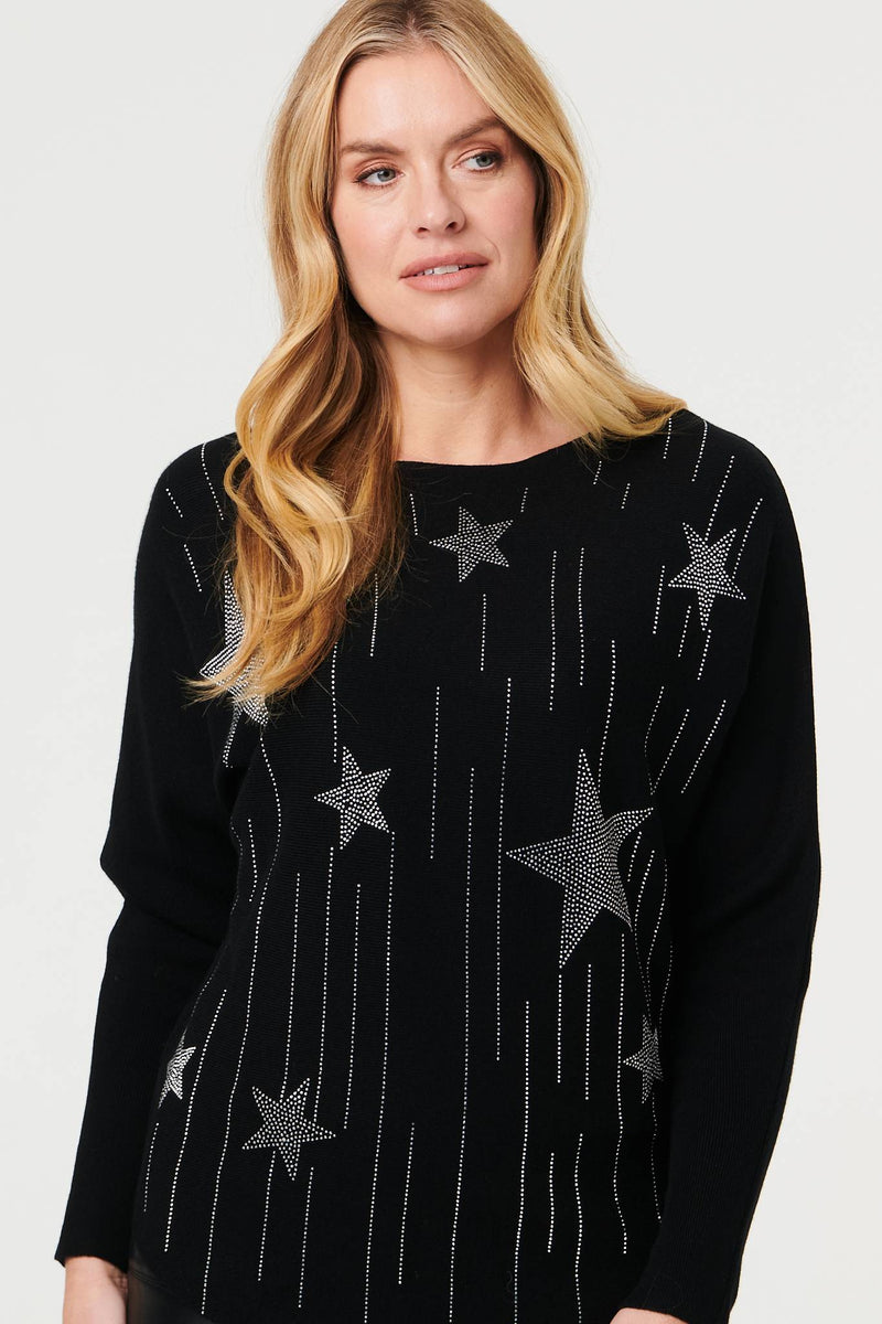 Sparkly Star Front Batwing Sleeve Jumper in Black