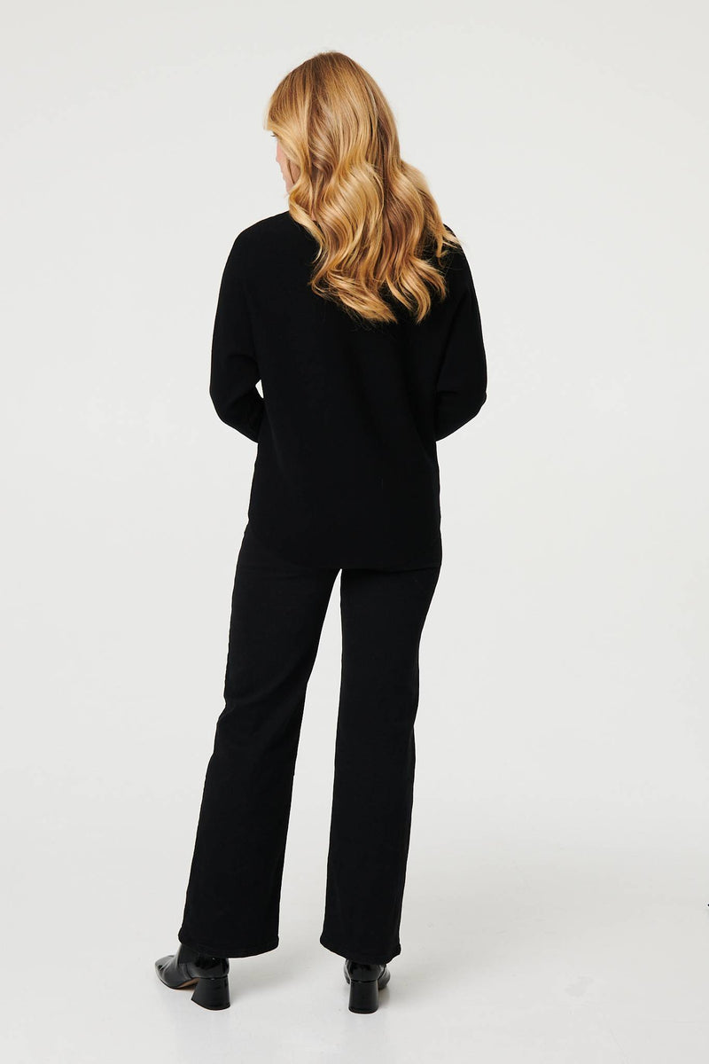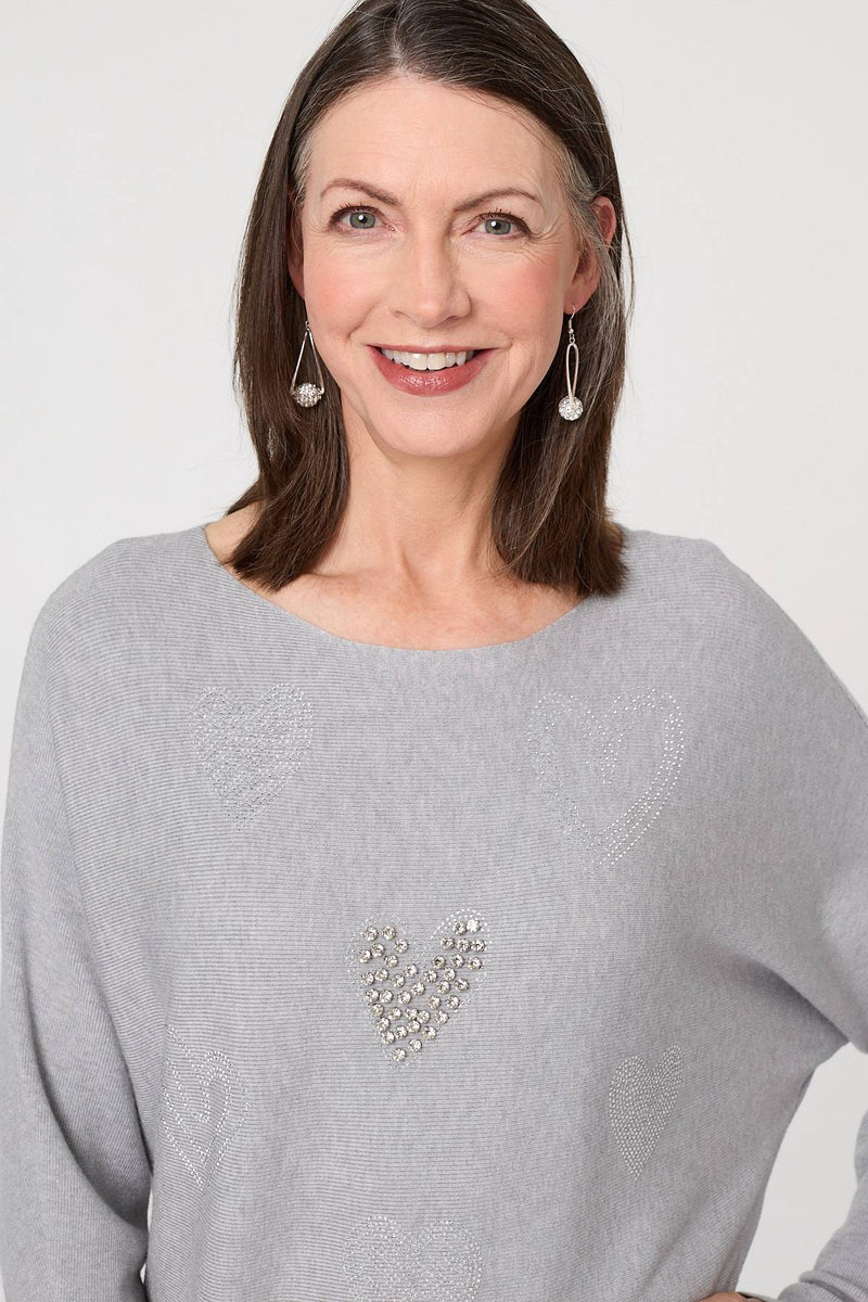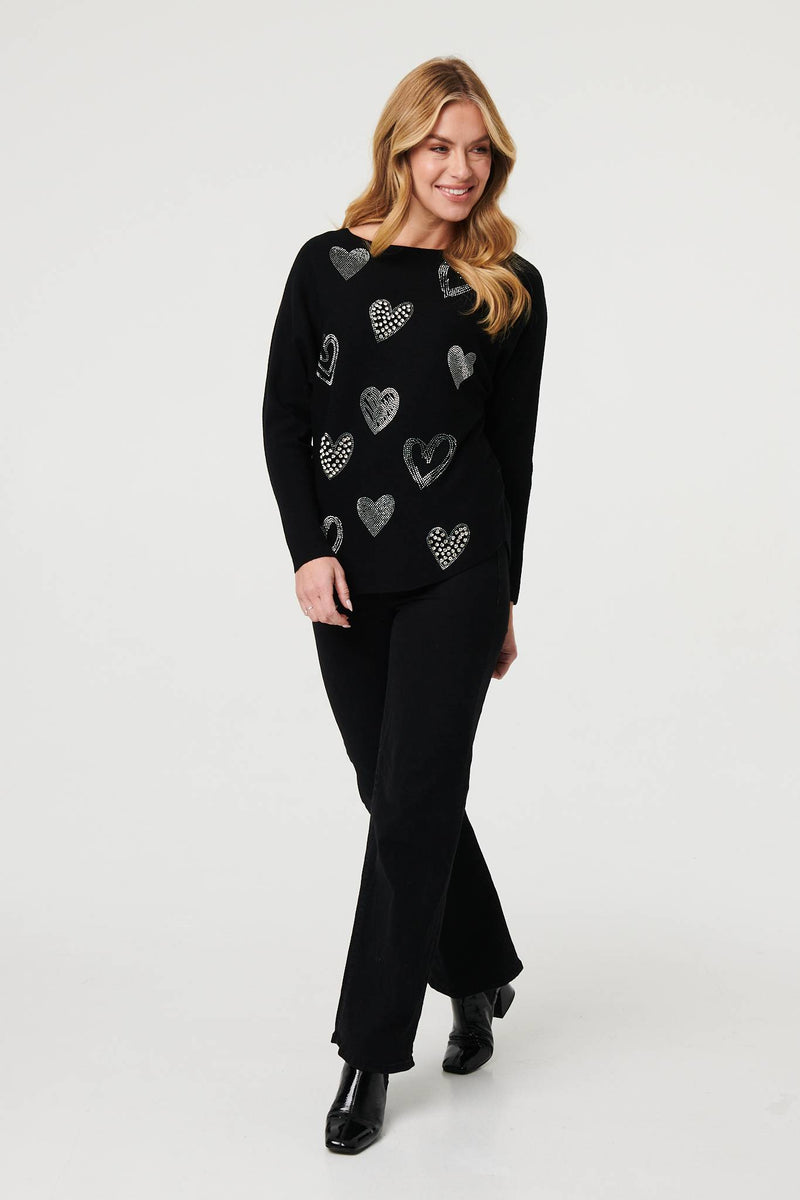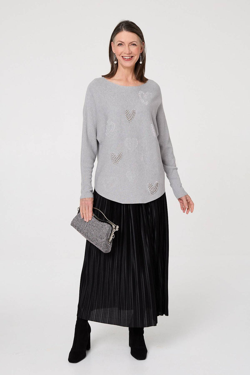 This sparkly jumper is finished with diamante details that will add some shimmer to any dress code. It has a relaxed fit with long sleeves, a hip length hem and a round neck. Leave it loose over your trousers or tuck it into a maxi skirt for an effortlessly elegant look.