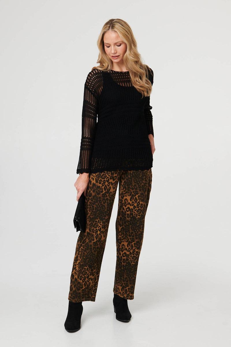 Tap into the mesh trend with this long sleeve top. It's made from a semi sheer mesh material, with an eye-catching texture that layers beautifully over your favourite t-shirt or vest. You can also style this top over a dress for a layered look. It has long sleeves, a round neck and a hip length hem.