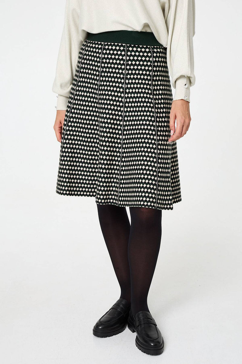 This knee length skirt is a must-have for your autumnal wardrobe. It has a high waist and a pleated knit texture, and a shape that flares slightly into a relaxed a-line shape. Wear it with a blouse tucked in for a smart outfit.
