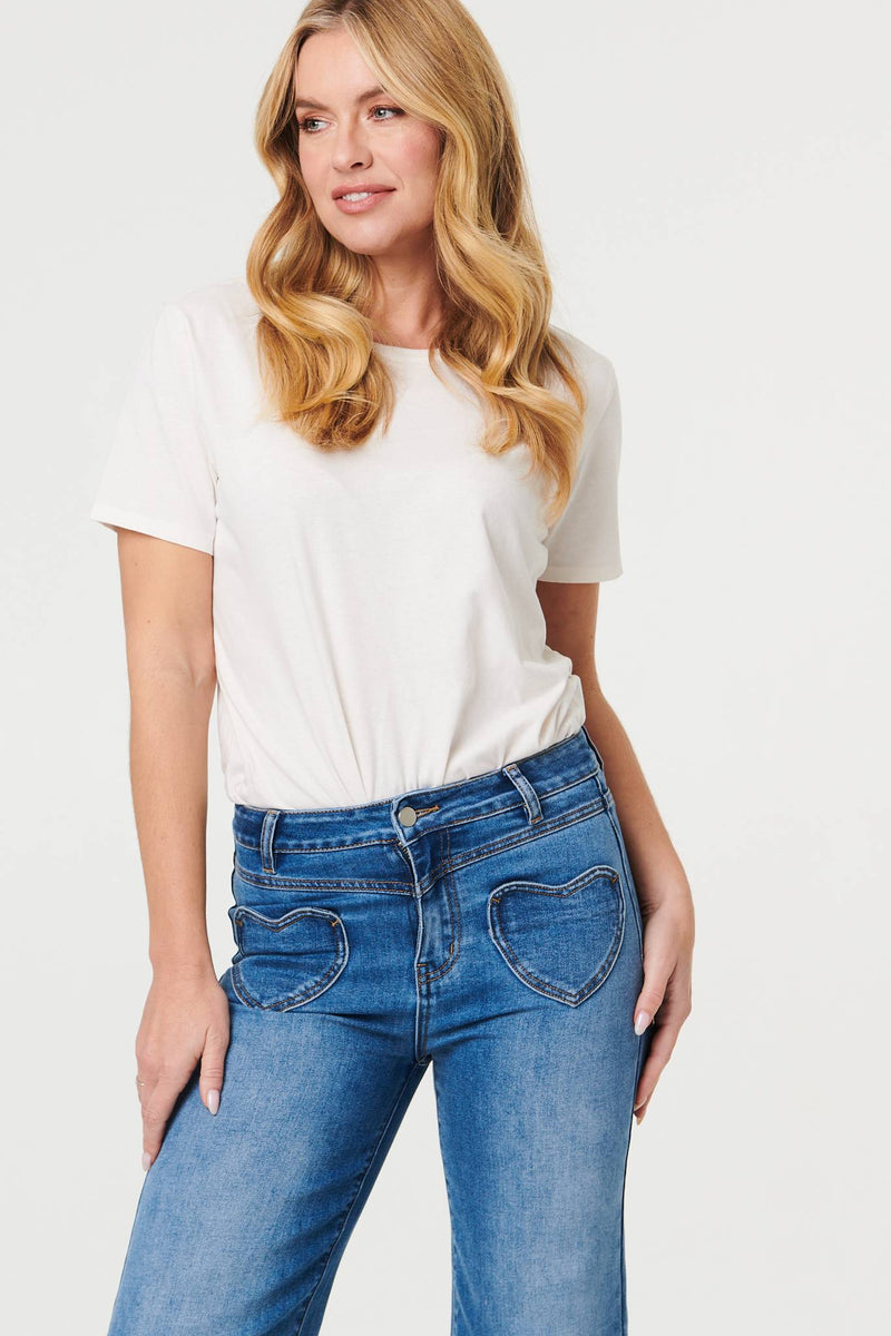 Give your denim collection an update with these comfy jeans. They have an elegant heart pocket detail on the front, along with belt loops and a buttons fastener. They have a straight leg fit and full length legs.