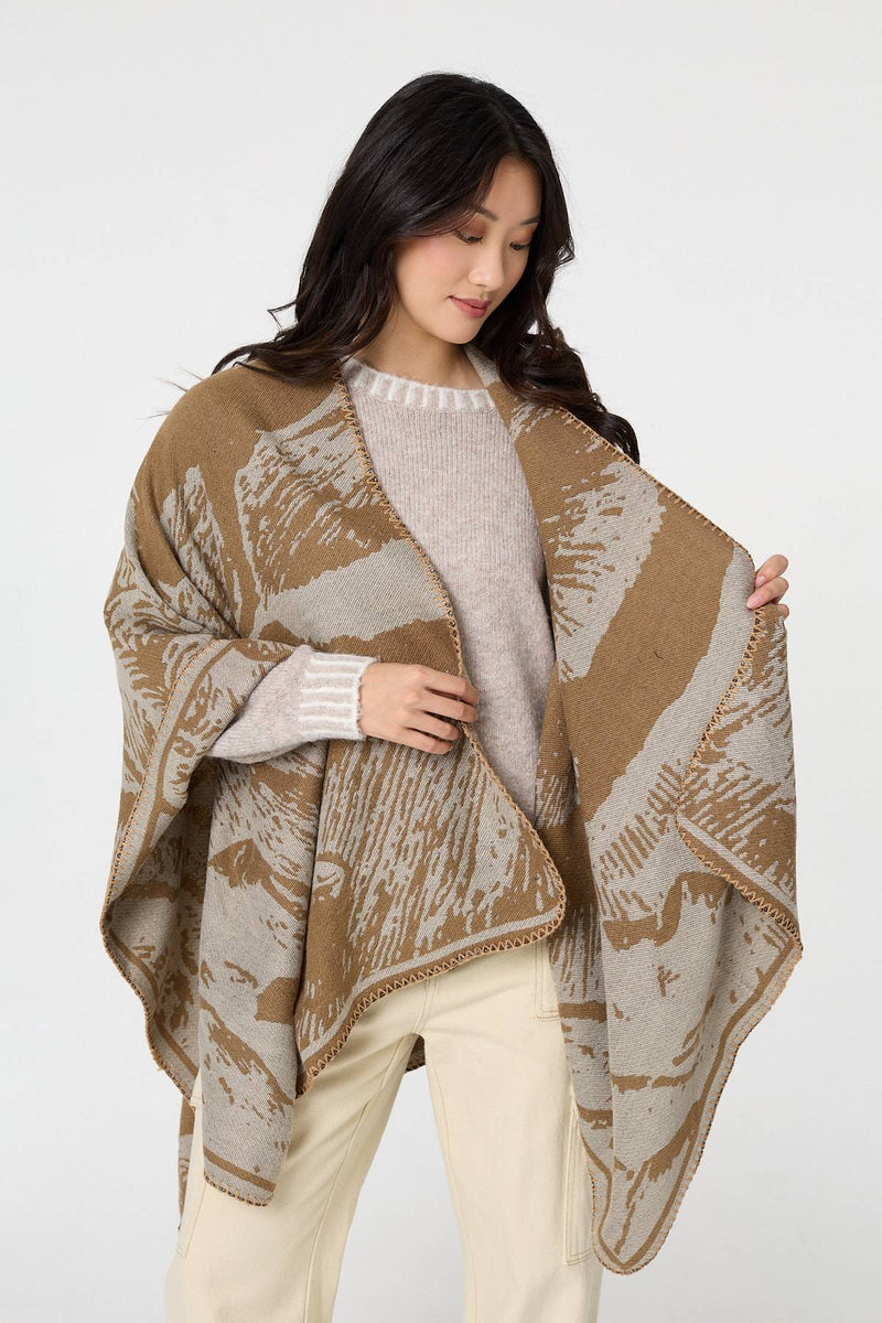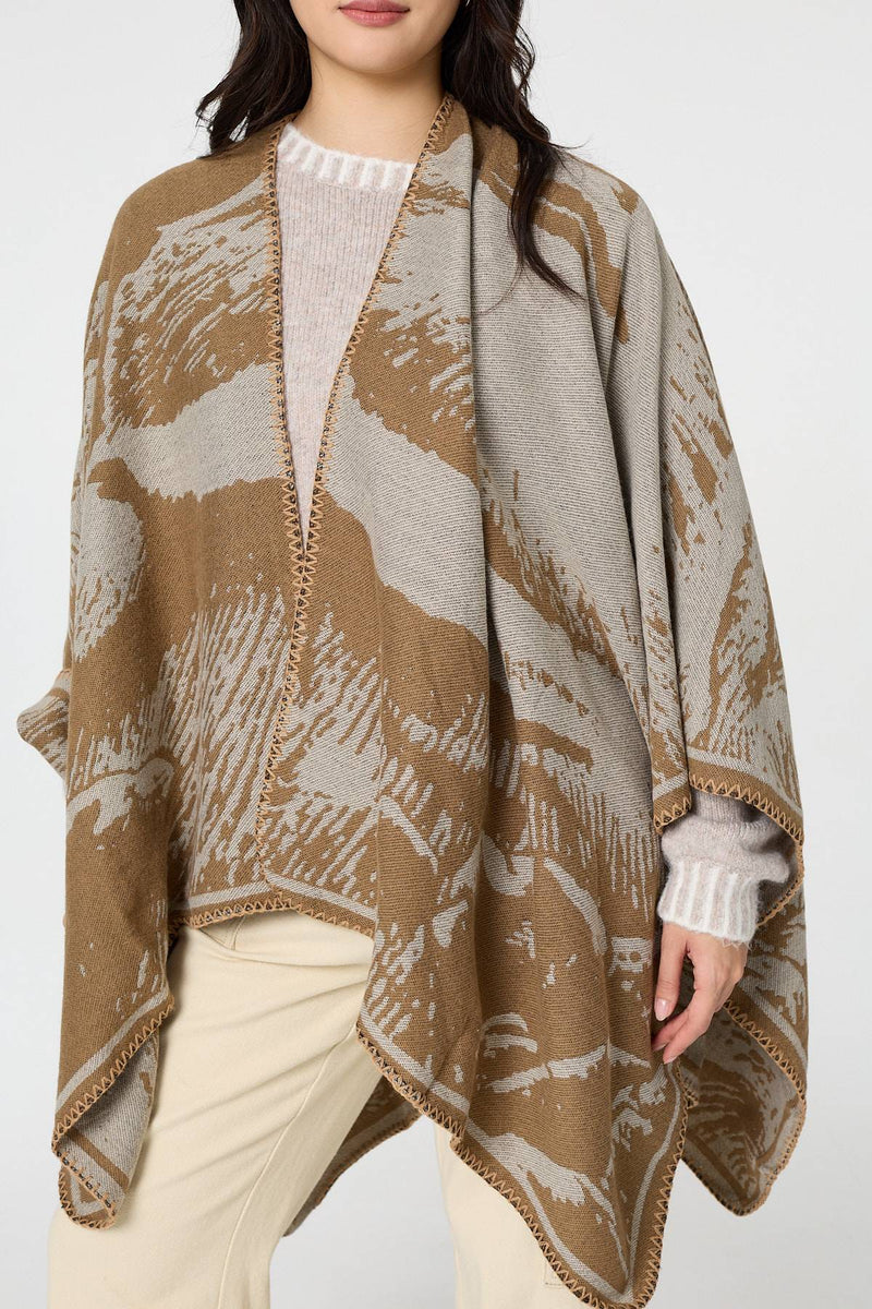 Stay cosy on a chilly day with this elegant poncho. It has a relaxed and oversized fit, complete with long sleeves and a longline hem. It also has a stitched trim as an elegant finishing touch. Wear it over a casual outfit on a cool day out.
