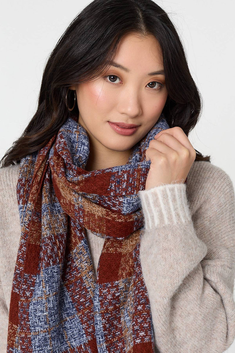 Stay warm when you wrap up in this oversized scarf. It has a large rectangular shape so you can drape it around your neck, wear it over your shoulders as a poncho, or add around the neckline of a jacket. It has a stylish fringed edge as an extra finishing touch.