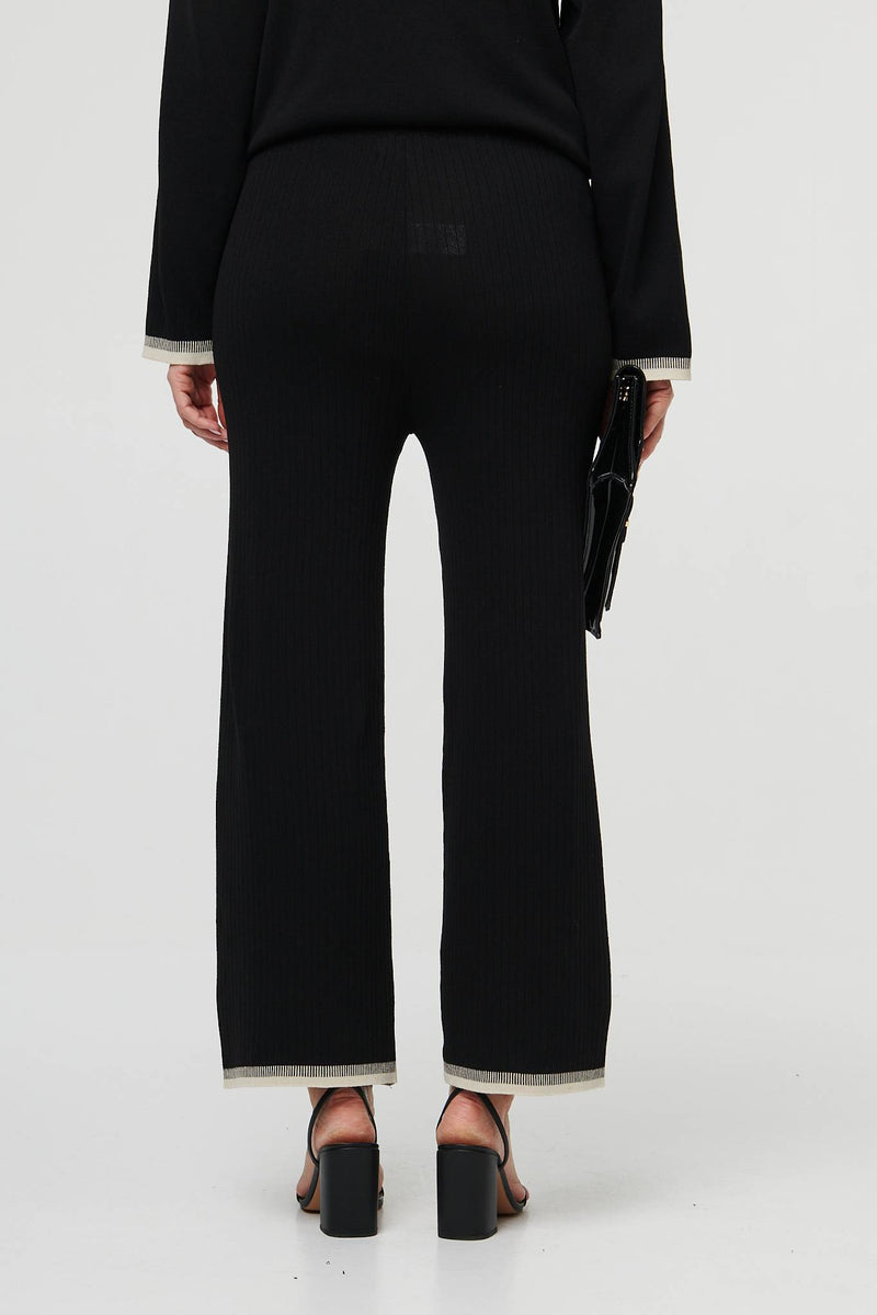 Floral Trim Jumper & Trousers Co-Ord Set in Black