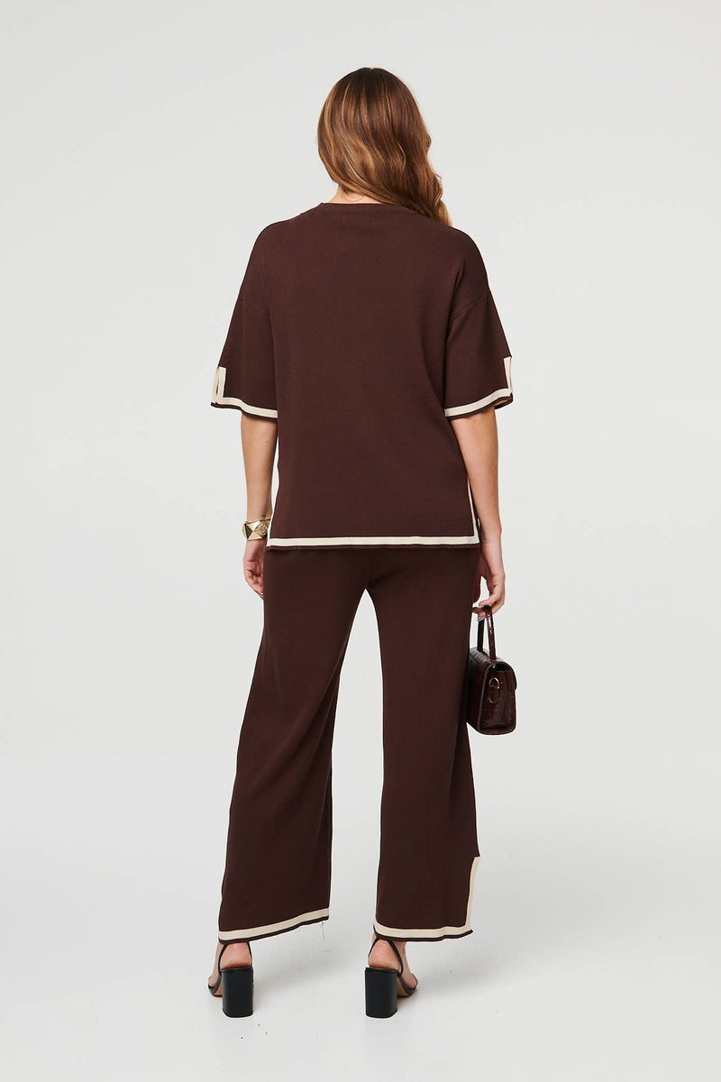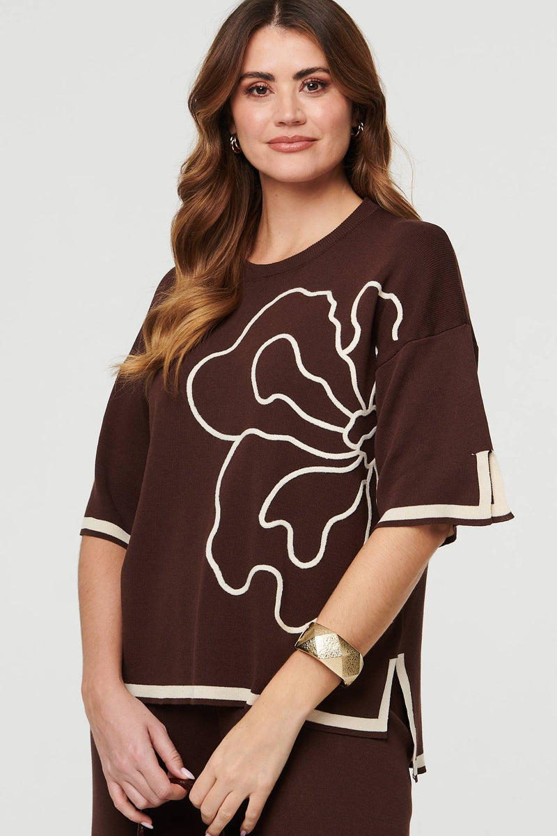 This loungewear co-ord set includes a comfortable top and matching trousers. The top has an oversized fit; complete with 1/2 sleeves, drop shoulders and a hip length hem. It's finished with a beautiful floral trim detail and a relaxed round neck. The co-ordinating trousers have a high waist and wide legs with full length hems. Wear this stylish loungewear set together for a relaxed day on the weekend, or wear them separately for even more outfit options.