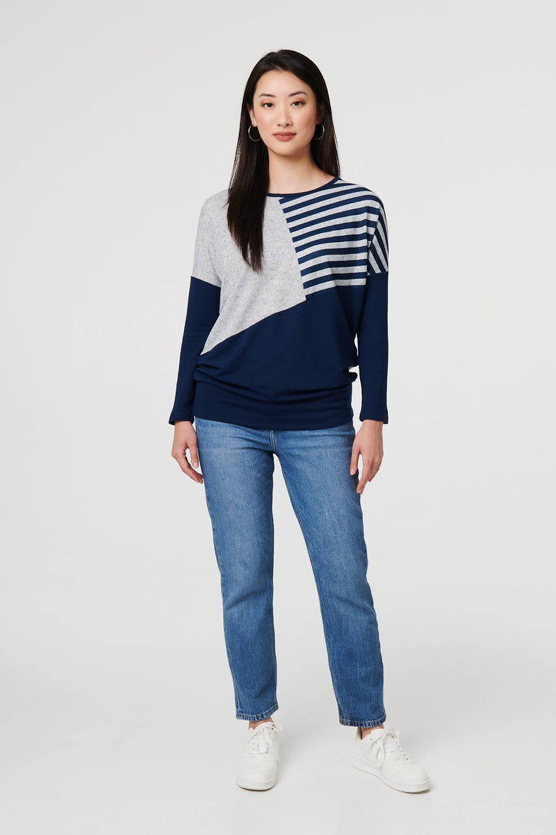 This relaxed top has long sleeves with drop shoulders, a round neck and a thigh length hem. Wear it for a casual occasion with blue jeans or dress it up with a midi skirt.