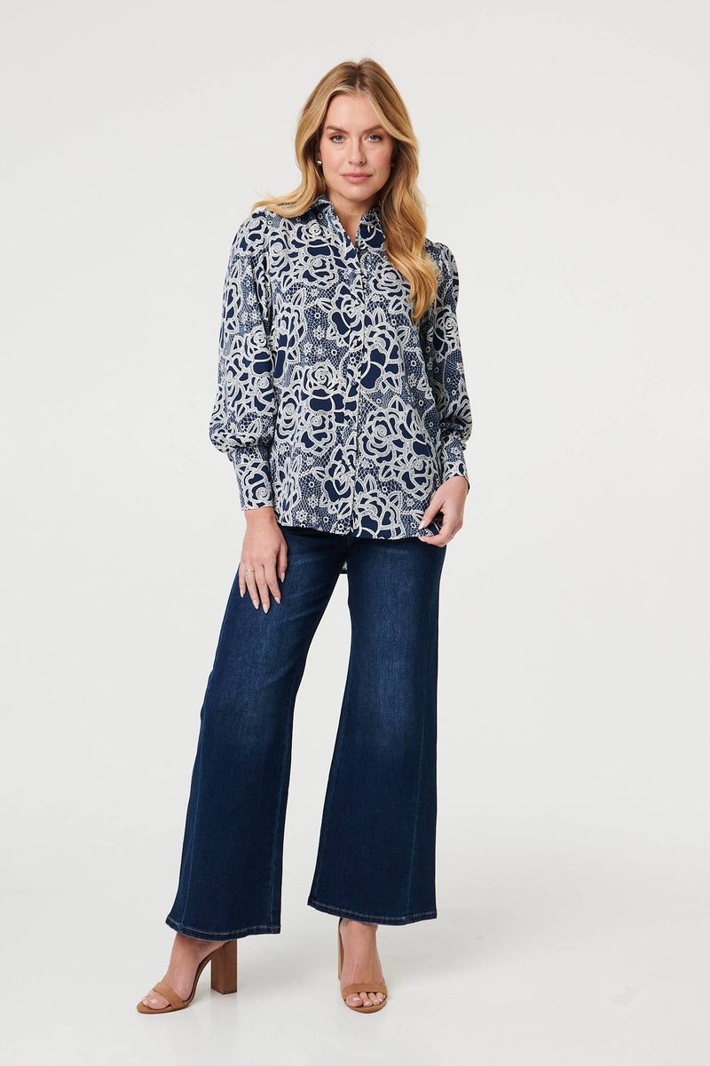 This elegant shirt is perfect for days at work, casual days out and smart dress code occasions. It has a flattering relaxed fit with long balloon sleeves, a collar and front buttons. The hip length hem means you can easily tuck this shirt into your waistband.