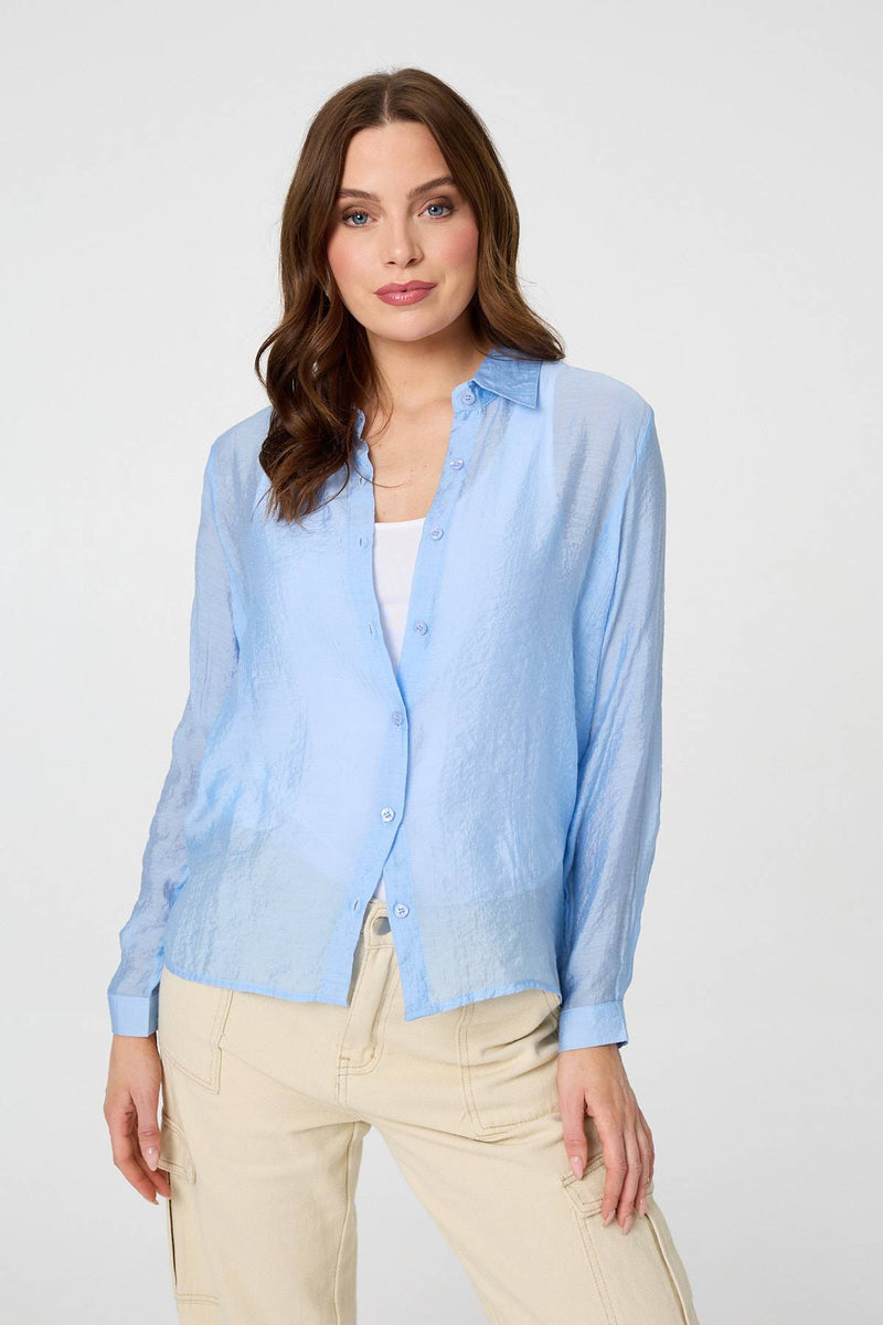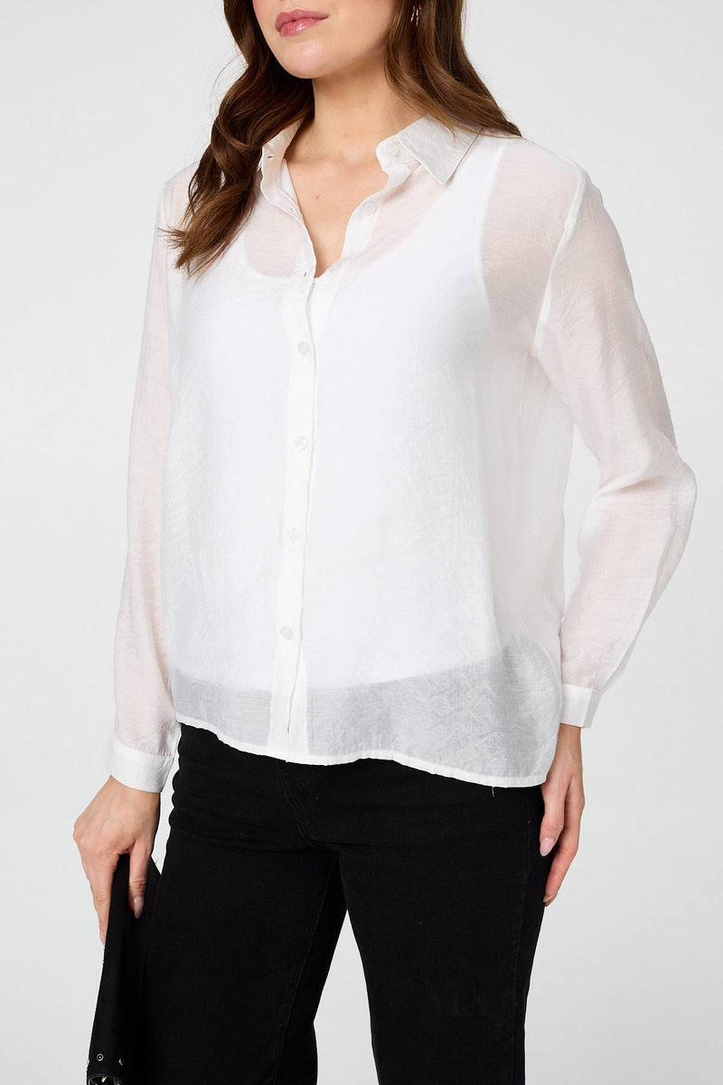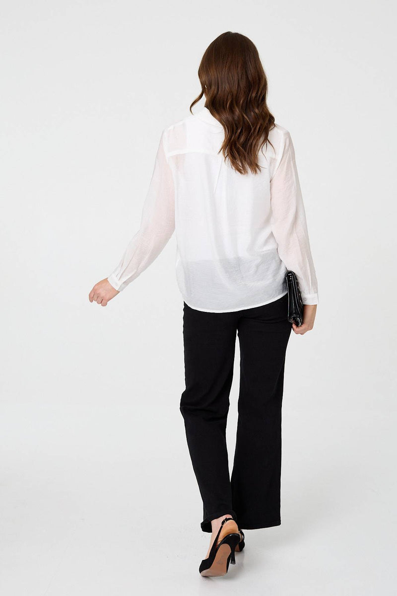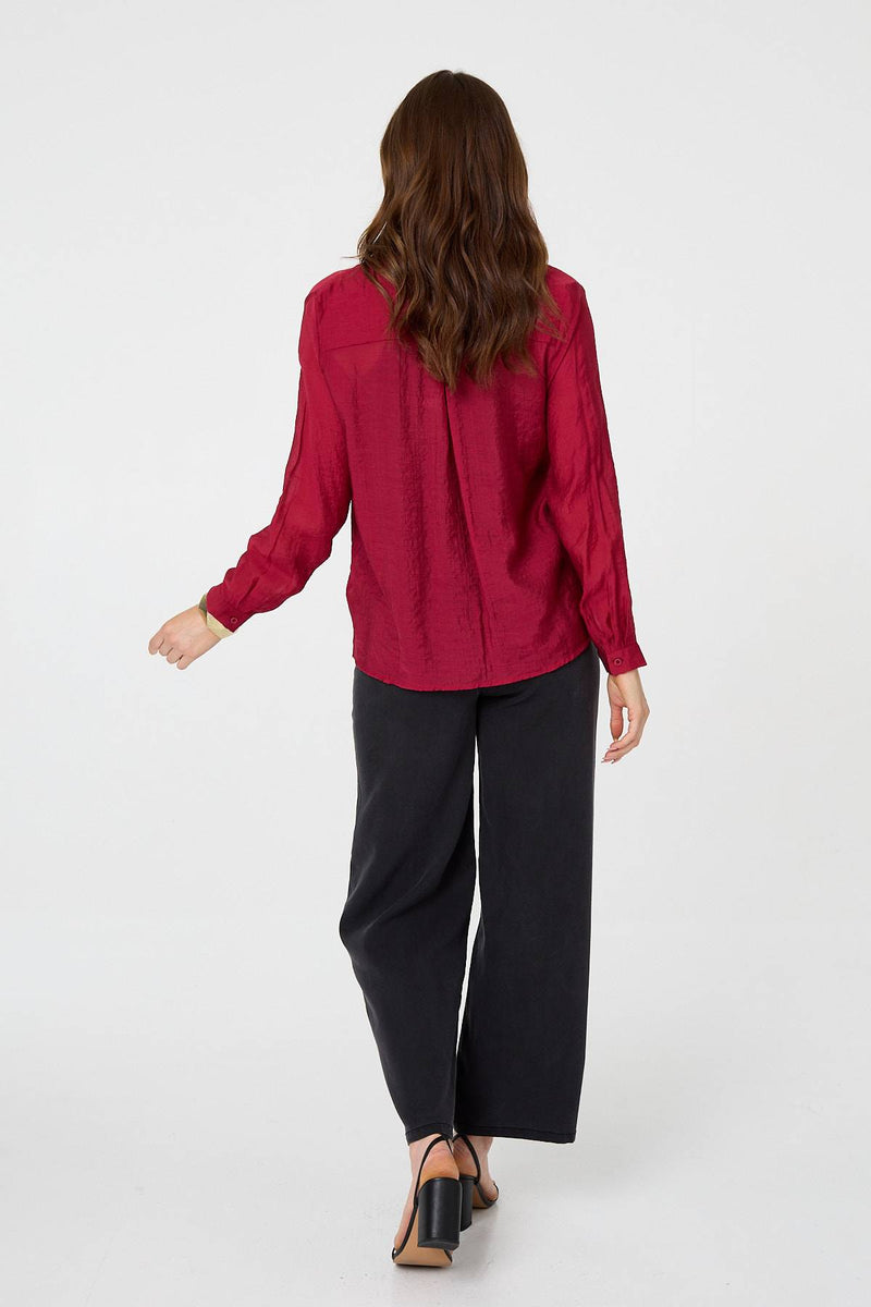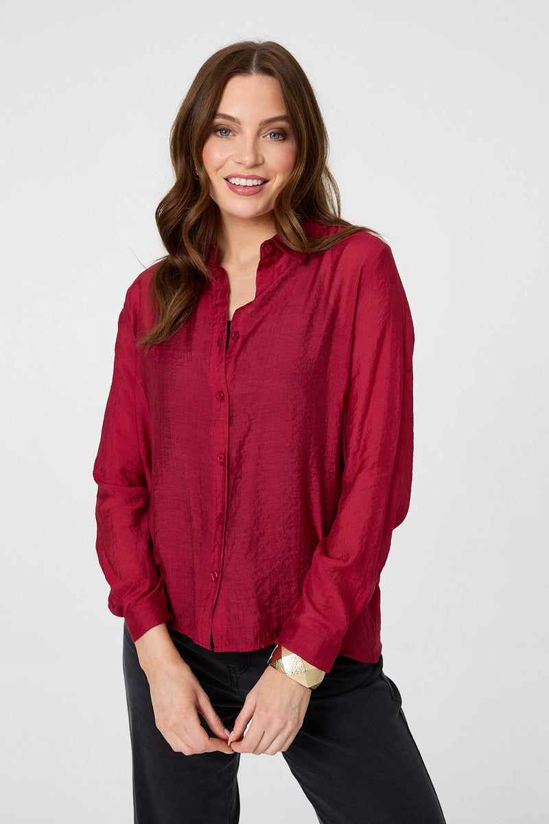 This simple shirt is a must-have for smart occasions. It has long sleeves, a collarless v-neck and front buttons. Get a versatile look from this top by pairing with blue jeans, a smart midi skirt or even animal print jeans.